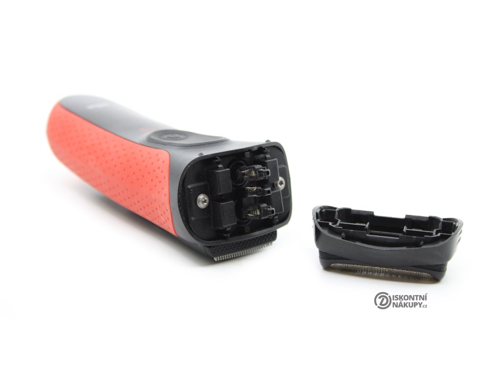 Na zadní straně je pak umístěn samostatný zastřihovač, s nímž můžete tvarovat okraje kotlet, knír, nebo třeba zkracovat plnovous. Při běžném holení je odvrácen směrem od vás a nikterak tedy nepřekáží.