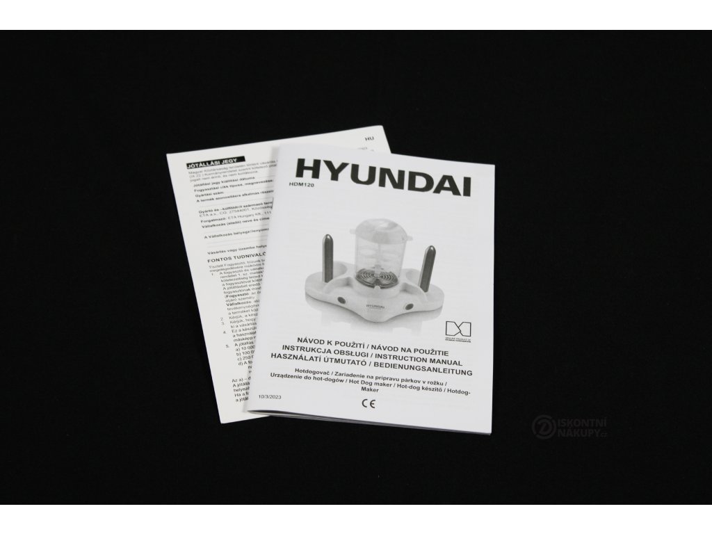 Hot dog Hyundai HDM 120 bílý ..Vystaveno na prodejně ..Ulomený plast na víčku - nemá vliv na funkci ..Náhradní krabice ..Záruka 12 měsíců