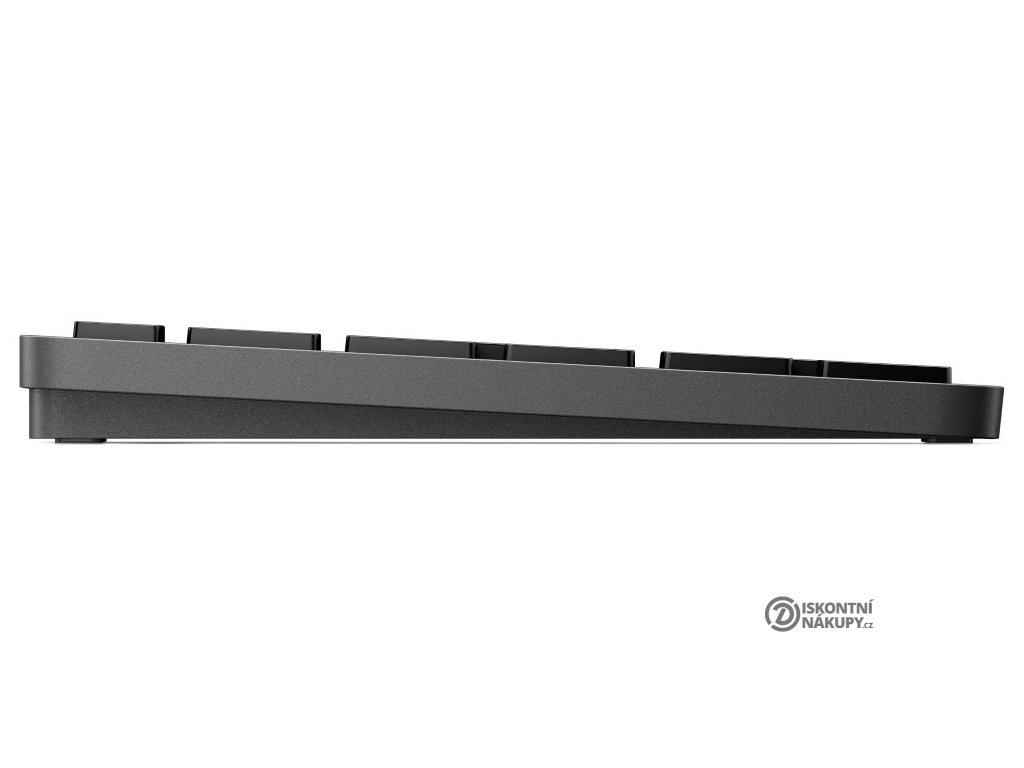 Plně vybavená bezdrátová klávesnice podporuje připojení až ke třem zařízením současně. Díky nízkému profilu kláves je psaní tiché a pohodlné. Klávesnice disponuje podsvícením, jehož intenzita je regulována automaticky pomocí senzoru okolního osvětlení. Připojení je realizováno bezdrátově skrze Bluetooth či miniaturní USB přijímač a technologii 2,4 GHz. Vestavěná dobíjecí baterie s kapacitou 2000 mAh udrží klávesnici v provozu až 6 měsíců.
