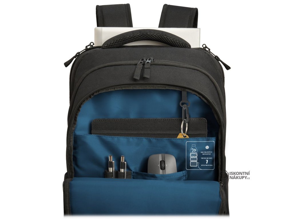Stylový batoh HP Renew Professional 17,3" pro přenášení notebooku, který je praktický a navržen s ohledem na ekologii. Batoh je dostatečně prostorný, aby se do něj vměstnal velký notebook, příslušenství a další předměty, včetně odpolední svačiny. Vyznačuje se pevným a odolným zpracováním, díky čemuž efektivně ochrání váš notebook během přenášení. Navíc se snadno čistí, takže si uchovává svůj původní vzhled po dlouhou dobu. Hlavní část batohu HP Renew Professional byla vyrobena ze 100% recyklovaných plastů vylovených z oceánu. Další prvky jako štítky, šňůrky nebo vycpávkové hmoty jsou vyrobeny ze 100% recyklovaných a biologicky rozložitelných materiálů.