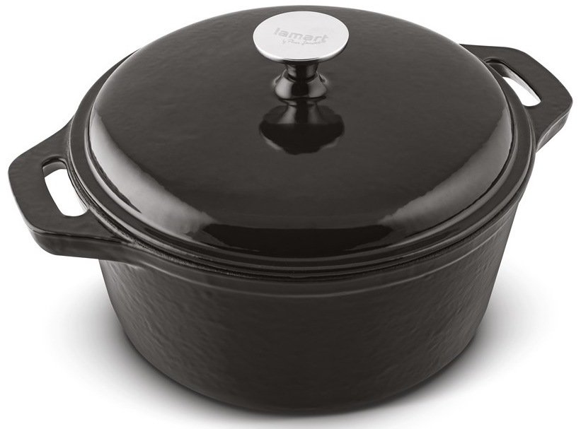 Lamart představuje smaltovaný litinový hrnec LT1209 IRON o průměru 25,5 cm. Hrnec je odolný vůči vysokým teplotám do 280 °C a jeho vnitřní i vnější smaltovaná vrstva odolává odření a praskání během vaření. Kvalitní litina, ze které je hrnec Lamart vyroben, se pyšní nepřilnavou vrstvou smaltu spojující nízkou adhezi s vysokou mechanickou a chemickou odolností nádobí a vzniká vysoce kvalitní, stálý, tvrdý a neměnný materiál. Vnitřní vrstva hrnce má tvarově upravené dno, které umožňuje vaření s nízkým obsahem tuku a zajišťuje přípravu vašich oblíbených pokrmů bez lepení a přichytávání potravin. Hrnce řady IRON jsou vhodné na všechny typy ploten včetně indukce, snadno se udržují a čistí.