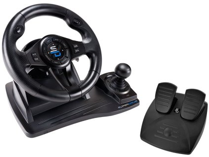 SUPERDRIVE GS550; Set SUPERDRIVE GS550 obsahuje vše pro komplexní řízení virtuálního vozu. Tato sada obsahuje volant, pedály a řadicí páku , abyste dosáhli maximálně...