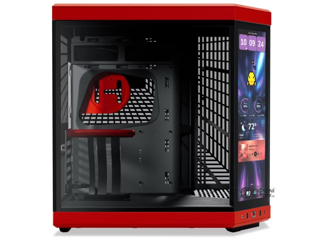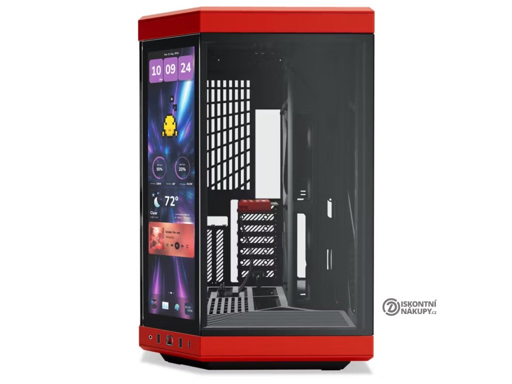 PC skříň HYTE Y70 Touch Infinite Black Cherry dá zapomenou na všechny fádní počítače, které jste kdy v životě viděli. Připravte se na zcela neokoukaný design, který vyráží dech a z počítače udělá vizuální klenot. Je elegantní, futuristická a opatřena dotykovým displejem. Současně je navržena pro výkonné a moderní PC systémy, čemuž odpovídá vnitřní uspořádání, podpora špičkových komponent a široká kompatibilita. Dvoukomorová PC skříň HYTE Y70 Black Cherry na první pohled zaujme dotykovým IPS displejem, na kterém přehledně zobrazíte systémové informace, animace, nebo třeba hudební přehrávač.