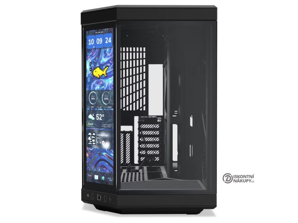 HYTE skříň Y70 Touch Infinite Pitch Black / 14,9" dotykový displej / levé a přední sklo / Riser PCIe 4.0 / bez zdroje / CS-HYTE-Y70TTI-BB