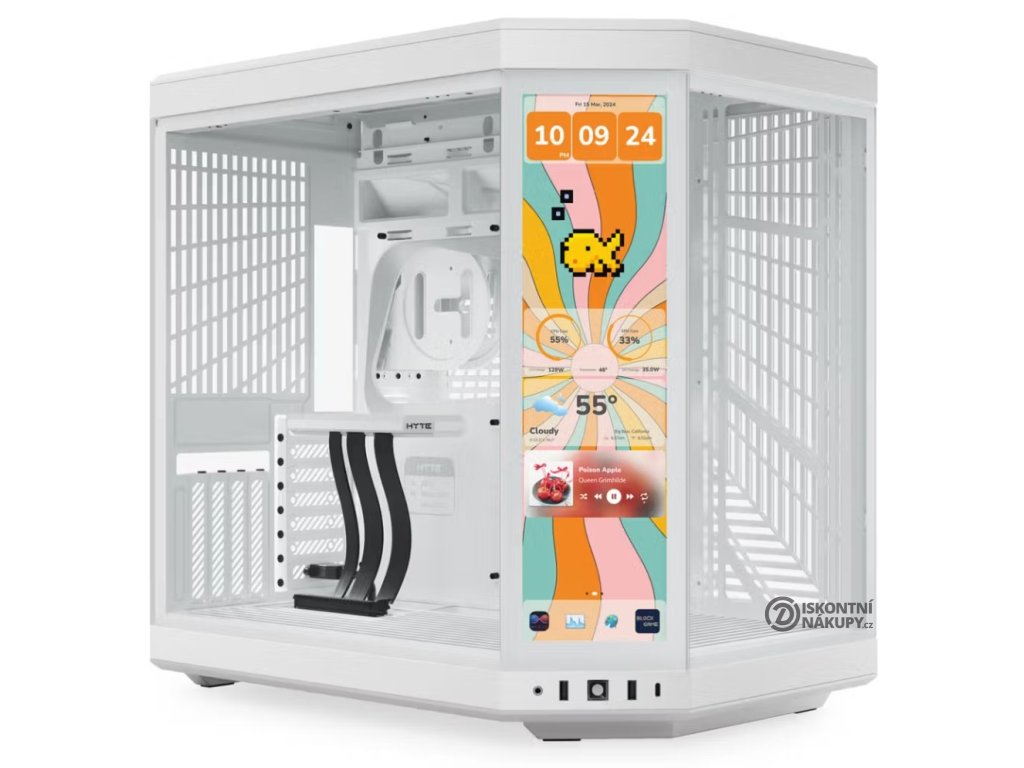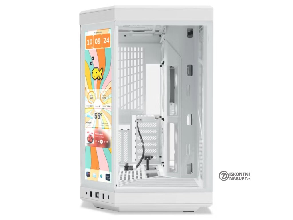 PC skříň HYTE Y70 Touch Infinite Snow White dá zapomenou na všechny fádní počítače, které jste kdy v životě viděli. Připravte se na zcela neokoukaný design, který vyráží dech a z počítače udělá vizuální klenot. Je elegantní, futuristická a opatřena dotykovým displejem. Současně je navržena pro výkonné a moderní PC systémy, čemuž odpovídá vnitřní uspořádání, podpora špičkových komponent a široká kompatibilita. Dvoukomorová PC skříň HYTE Y70 Touch Infinite na první pohled zaujme dotykovým IPS displejem, na kterém přehledně zobrazíte systémové informace, animace, nebo třeba hudební přehrávač.