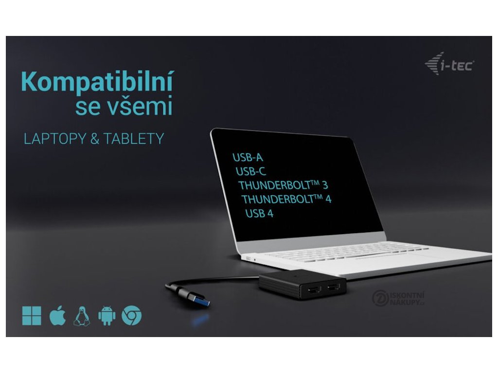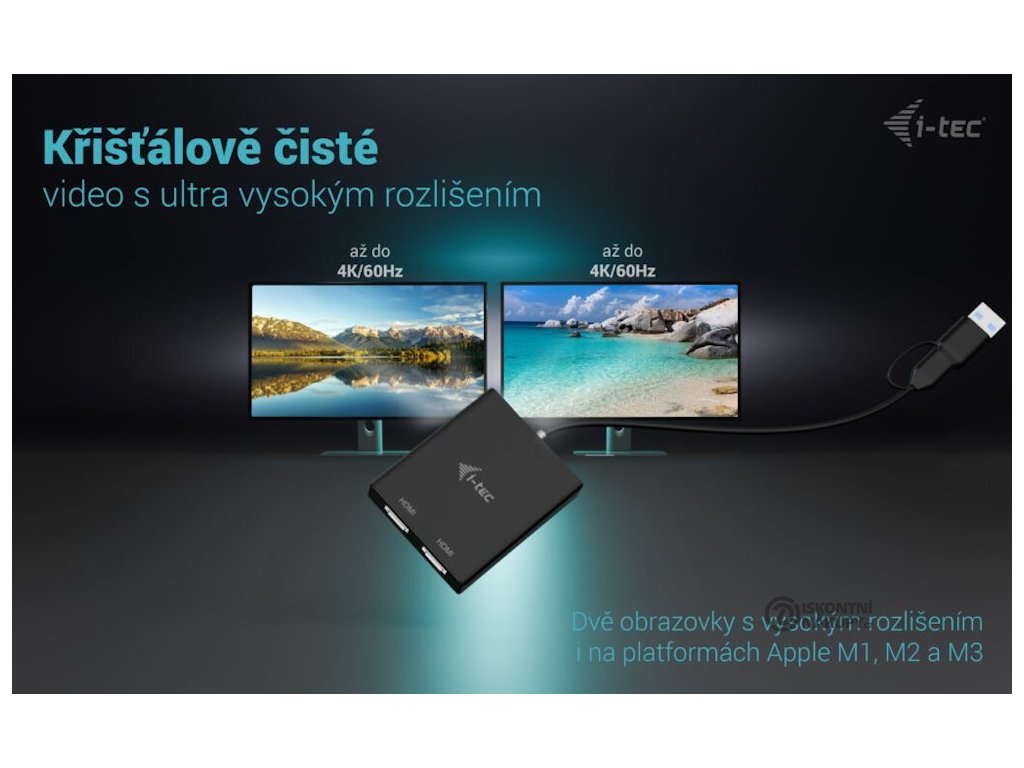 I-TEC USB-A/USB-C Dual 4K HDMIVideo adaptér, který umožňuje rozšíření vaší pracovní plochy o dva externí HDMI monitory. Připojení lze jednoduše realizovat skrze konektor USB-A či USB-C s podporou USB 4.0 a Thunderbolt 3/4. Adaptér podporuje přenos rozlišení 4K při 60 Hz včetně zvukového signálu.