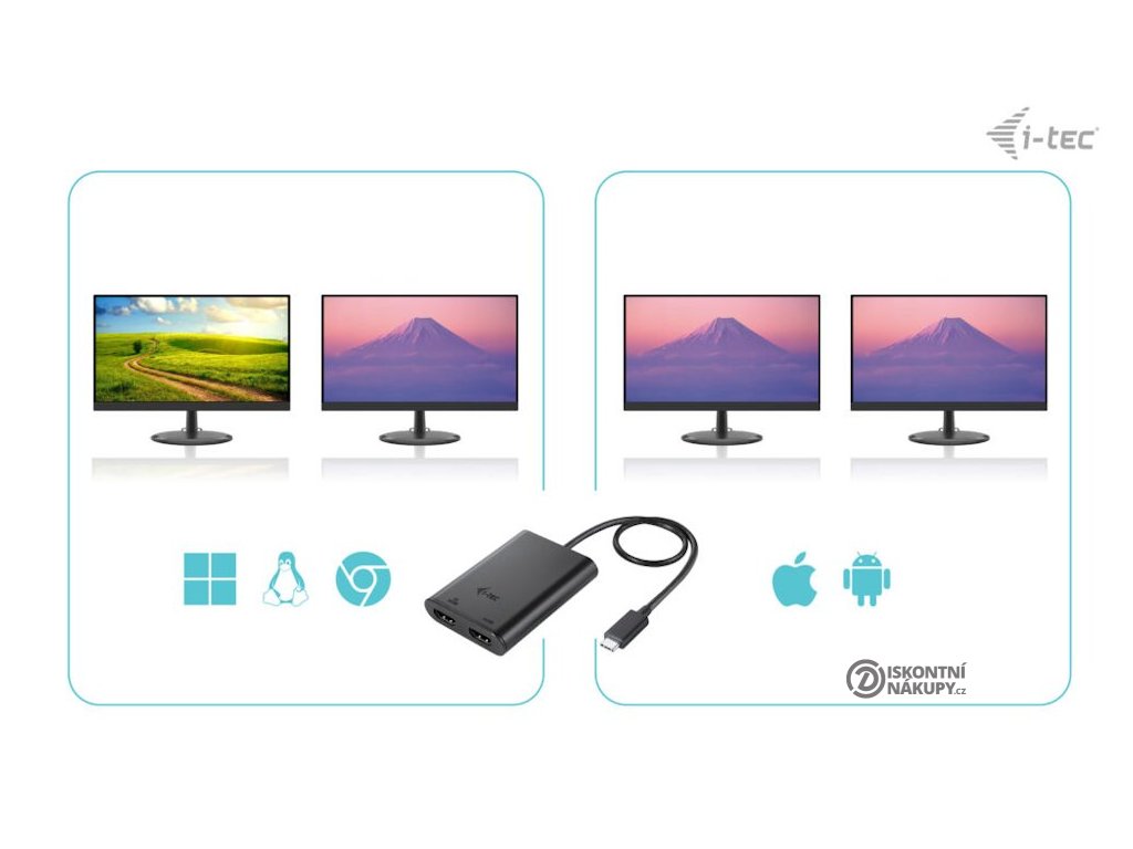 I-TEC USB-C Dual 4K HDMIVideo adaptér, který umožňuje rozšíření vaší pracovní plochy o dva externí HDMI monitory. Připojení lze jednoduše realizovat skrze konektor USB-C, USB 4.0 nebo Thunderbolt 3/4. Adaptér podporuje přenos rozlišení až 1× 8K při 30 Hz nebo až 2× 4K při 60 Hz.