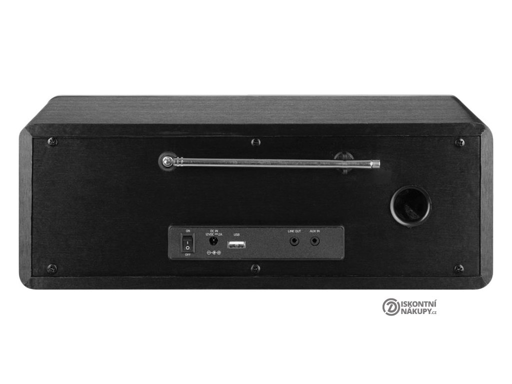 DAB, FM, internetové rádio, BT, CD, USB, microSD, Wi-Fi 802.11 b/g/n, budík, 2,8" displej, sluch. jack, AUX-in, audio out, 2x10 W, ovladač, adaptér