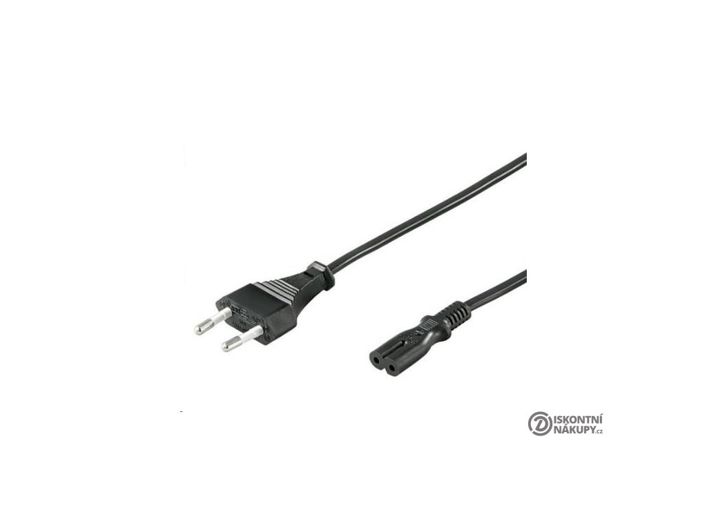Napájecí kabel v černém provedení pro napájecí adaptér. Dvoužilový kabel je zakončený koncem v podobě ležaté osmičky.