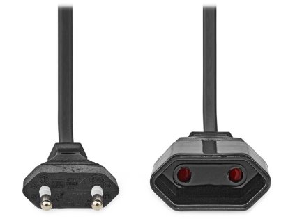 Nedis kabel Euro na IEC-320-C1 černý 2 m; Napájecí kabel s konektorem Euro vhodný k připojení zařízení napájených ze sítě do zásuvky ve zdi. ZÁKLADNÍ SPECIFIKACE; Konektor 1:...