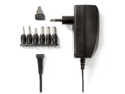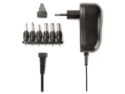 Nedis ACPA007; Kompaktní a velmi účinný univerzální napájecí adaptér s výstupem 3–12 V. 6 výměnných napájecích konektorů umožňuje použití s mnoha různými přístroji. ZÁKLADNÍ...