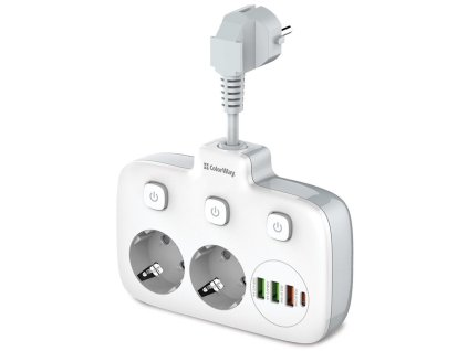 ColorWay CW-CHE24PDW; Kompaktní prodlužovací přívod se dvěma Schuko zásuvkami, třemi USB porty a jedním USB-C konektorem . Lze s ním tedy připojit nejen elektrické spotřebiče,...