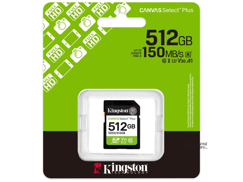 KINGSTON Canvas Select Plus Gen3 512GB SDXC / C10 / UHS-I U3 V30 / up to 150MB/s SDS3/512GB