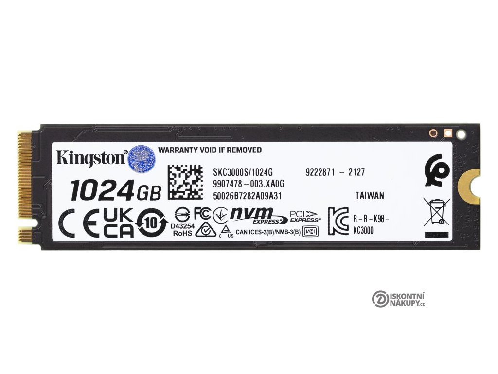 KINGSTON KC3000 1TB SSD (1024GB) / NVMe M.2 PCIe Gen4 / Interní / M.2 2280 / chladič SKC3000S/1024G