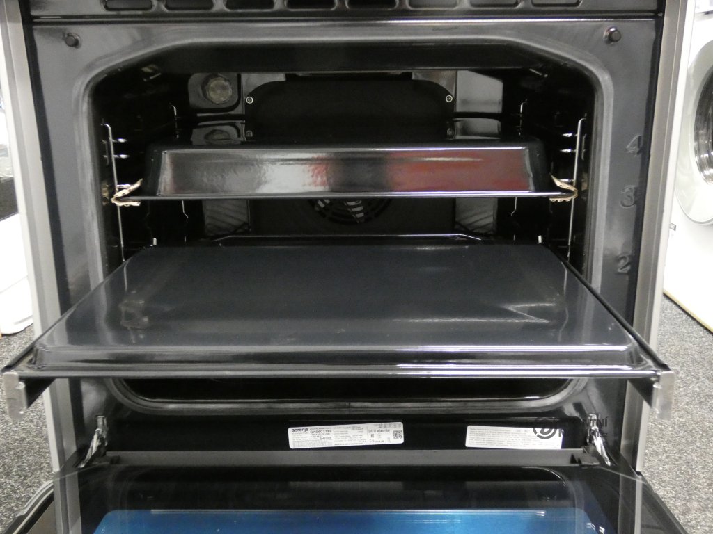 Sporáky Gorenje nabízejí zvětšenou pečicí plochu pro použití extra velkých pečících plechů. Inovativní řešení umožňují optimalizovanou spotřebu energie a rovnoměrně upečené jídlo bez ohledu na jeho množství. Efektivně se využívá celá šířka trouby, zatímco špičková technologie zajišťuje, že jídlo bude rovnoměrně propečené na všech úrovních.