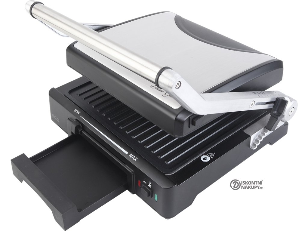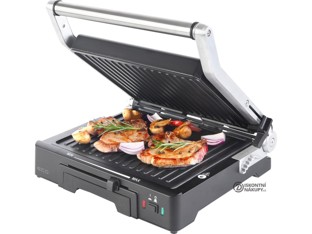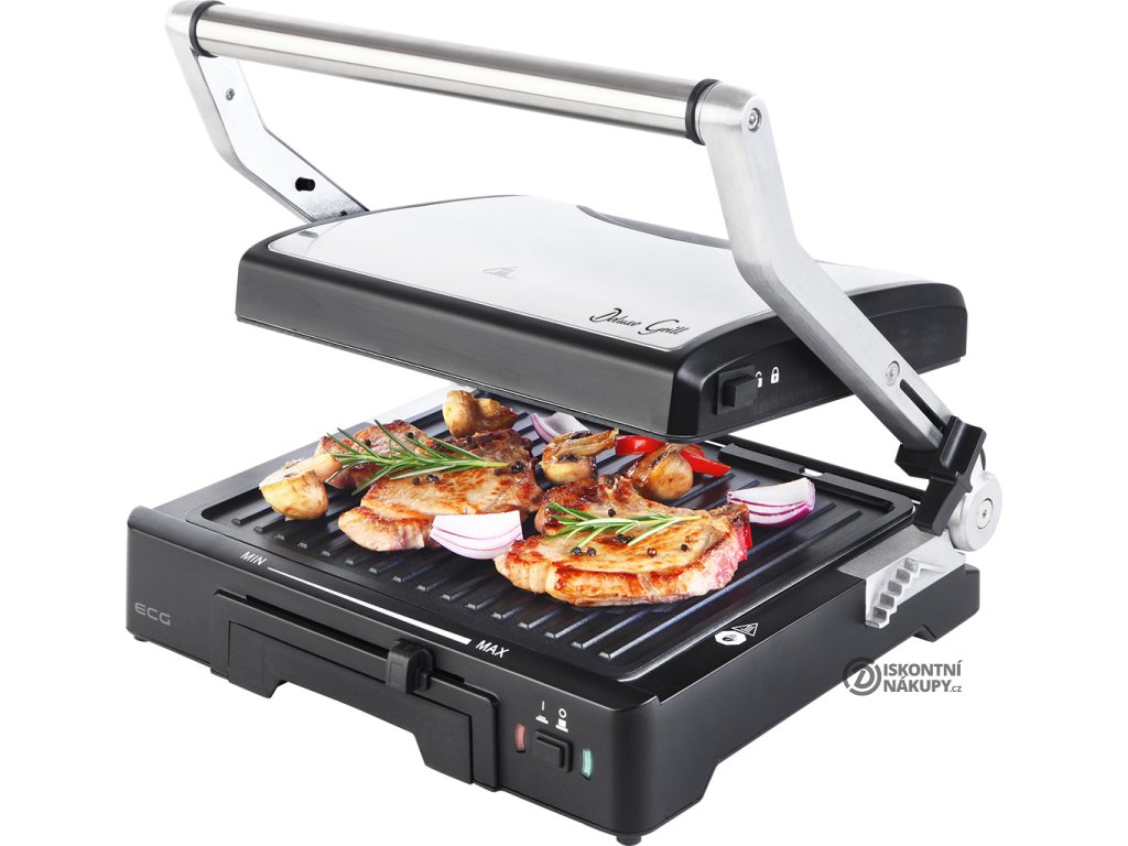 Pomocí kontaktního grilu ECG KG 300 deluxe, který je zhotoven z nerezové oceli, připravíte během několika minut svůj oblíbený pokrm, ať už se jedná o šťavnatý steak, rybu nebo voňavou zeleninu. Na výběr máte ze tří provozních poloh umožňujících zapékání, grilování nebo barbeque. Teplotu si budete moci variabilně nastavit dle potřeby pomocí posuvného termostatu. Při přípravě pokrmů i následném čištění jistě oceníte grilovací plochy z nepřilnavého povrchu. Čištění usnadňuje i možnost vyjmutí grilovacích desek z grilu. Praktickým prvkem je ve spodní části umístěný sběrný zásobník na odkapávající tuk a výpek. Součástí balení je praktická stěrka na odstranění oleje.