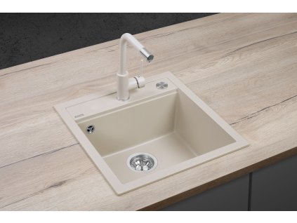 Granitový dřez bez odkapu CUBIS Concept DG00C50be vyniká atraktivním designem, kvalitním zpracováním a komfortní tlačítkovou výpustí PUSH-IN Button.