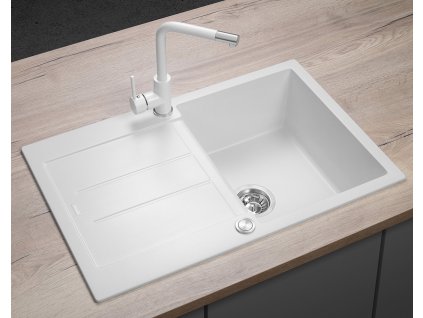Granitový dřez bez odkapu CUBIS Concept DG00C50wh vyniká atraktivním designem, kvalitním zpracováním a komfortní tlačítkovou výpustí PUSH-IN Button.