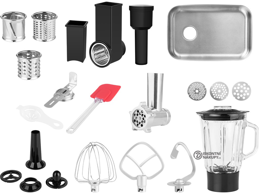 Kuchyňský robot ECG Forza 5500 Giorno vám pomůže s mnoha různými činnostmi. Jeho výbava je totiž opravdu bohatá. Posuďte sami: využívat můžete míchací hák na těsto, šlehací hák i šlehací metlu z nerezové oceli. Také máte k dispozici mlýnek na maso se 3 vyměnitelnými disky pro mletí různých druhů masa, bubnové struhadlo nebo speciální tvořítko na cukroví či sušenky. A samozřejmě nesmí chybět ani klasický mixér s kvalitními čepelemi z nerezové oceli a skleněnou nádobou (o objemu 1,5 l).