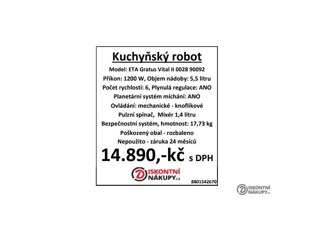 Kuchyňský robot ETA Gratus Vital II 0028 90092 bílý Poškozený obal-rozbaleno