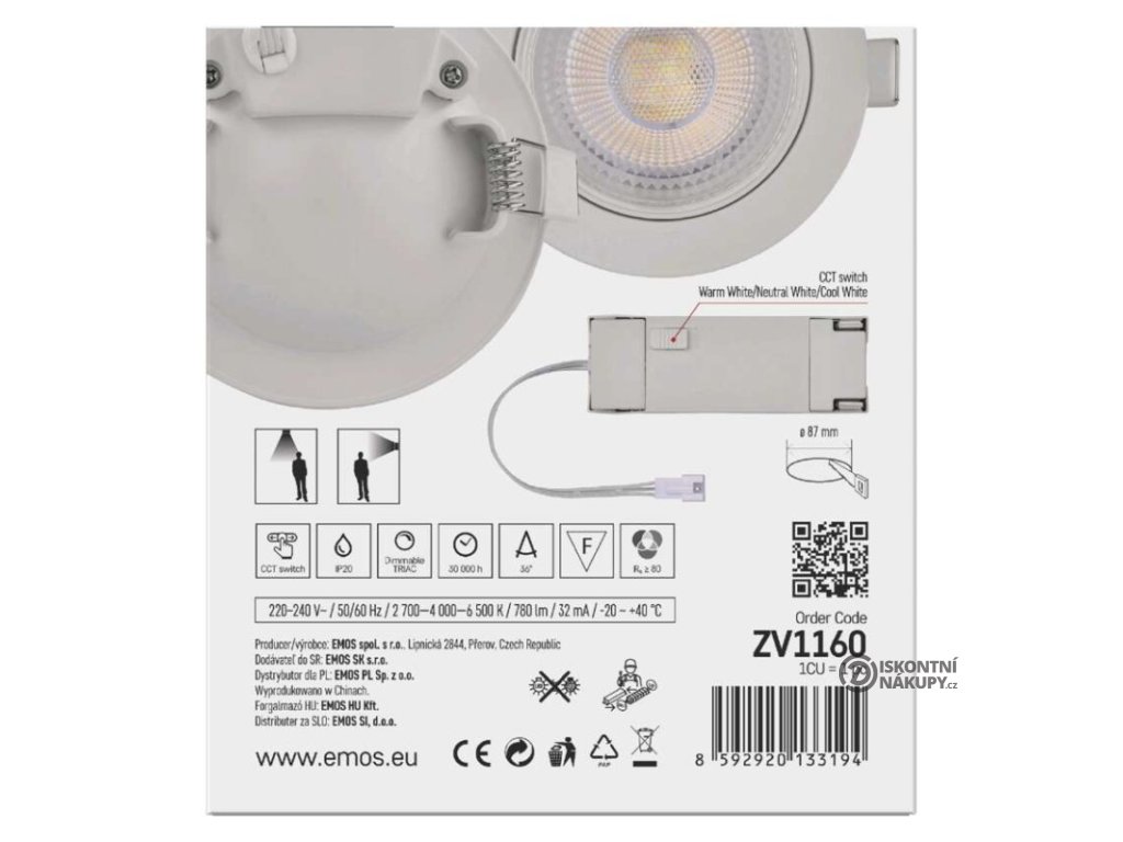 barva světla: | teplá/neutrální/studená bílá |