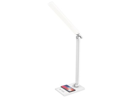 Stmívatelná LED stolní lampa s displayem, hodinami a teploměrem. Příkon 8W poskytuje jasné světlo až 550lm a lze nabíjet mobilní telefon pře USB nebo bezdrátově.