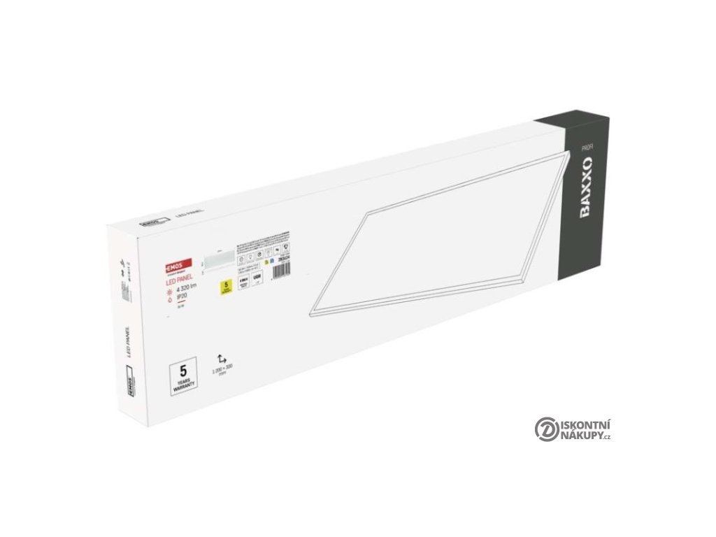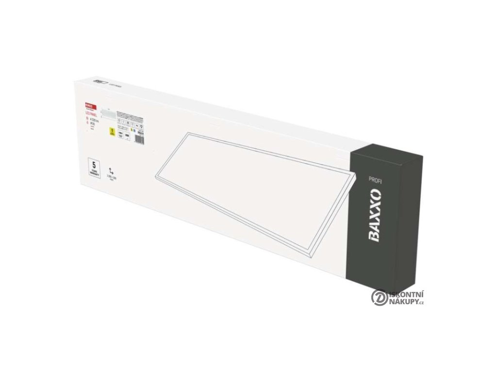 barva světla: neutrální bílá|barva těla: bílá|dálkový ovladač: ne|další funkce: –|do chodby a na schodiště: ano|do dílny a garáže: ne|do kanceláře: ano|do koupelny: ne|do kuchyně: ano|do obýváku, ložnice a dětského pokoje: ano|dosah senzoru: nemá senzor|flicker-free: ano|frekvence: 50/60 Hz|index podání barev (CRI): Ra > 80|jazyky aplikace: –|kategorie: PROFI|kompatibilita: –|krytí: IP20|materiál difuzoru: plast (PS)|materiál LGP: –|materiál těla: ocelový plech|montážní otvor: –|možnost stmívání: ne|náhrada za žárovku: 4× 18 W CFL|napětí: 220–240 V~|na zahradu a balkon: ne|notifikace do mobilní aplikace: ne|obsah balení: –|ovládání hlasovými asistenty: ne|podporované OS: –|pohybový senzor: ne|přenosová frekvence: –|příkon: 36 W|prodejní obal: 1 ks, krabice|protokol: –|proud: 170 mA|řada: BAXXO|rozměr: 1 200 × 300 × 50 mm|světelná účinnost: 120 lm/W|světelný tok: 4 320 lm|teplota chromatičnosti: 4 000 K|tvar: obdelník|typ difuzoru: mikroprizmatický|typ svítidla: panel|účiník: > 0,9|UGR<: 19|úhel vyzařování: 90°|umístění: stropní/nástěnné|výstupní proud ze zdroje: 950 mA|záruční doba: 5 let|zdroj světla: LED|životnost: 50 000 hodin|způsob montáže: přisazenéDoplňkové parametry