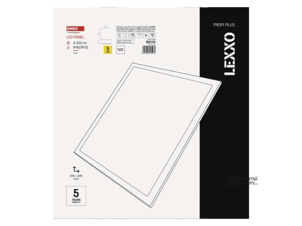 barva světla: neutrální bílá|barva těla: bílá|dálkový ovladač: ne|další funkce: –|do chodby a na schodiště: ano|do dílny a garáže: ano|do kanceláře: ano|do koupelny: ne|do kuchyně: ne|do obýváku, ložnice a dětského pokoje: ne|dosah senzoru: neuvádí se|flicker-free: ano|frekvence: 50/60 Hz|index podání barev (CRI): Ra > 80|jazyky aplikace: –|kategorie: PROFI PLUS|kompatibilita: –|krytí: IP44/IP20|materiál difuzoru: plast (PC)|materiál LGP: neuvádí se|materiál těla: ocelový plech|montážní otvor: neuvádí se|možnost stmívání: ne|náhrada za žárovku: 4× 18 W CFL|napětí: 220–240 V|na zahradu a balkon: ne|notifikace do mobilní aplikace: ne|obsah balení: –|ovládání hlasovými asistenty: ne|podporované OS: –|pohybový senzor: ne|přenosová frekvence: –|příkon: 30 W|prodejní obal: 1 ks, krabice|protokol: –|proud: 145 mA|řada: LEXXO|rozměr: 595 × 595 × 25 mm|světelná účinnost: 140 lm/W|světelný tok: 4 200 lm|teplota chromatičnosti: 4 000 K|tvar: čtverec|typ difuzoru: mléčný|typ svítidla: panel|účiník: > 0,9|UGR<: 22|úhel vyzařování: 120°|umístění: stropní|výstupní proud ze zdroje: 650 mA|záruční doba: 5 let|zdroj světla: LED|životnost: 50 000 hodin|způsob montáže: vestavnéDoplňkové parametry