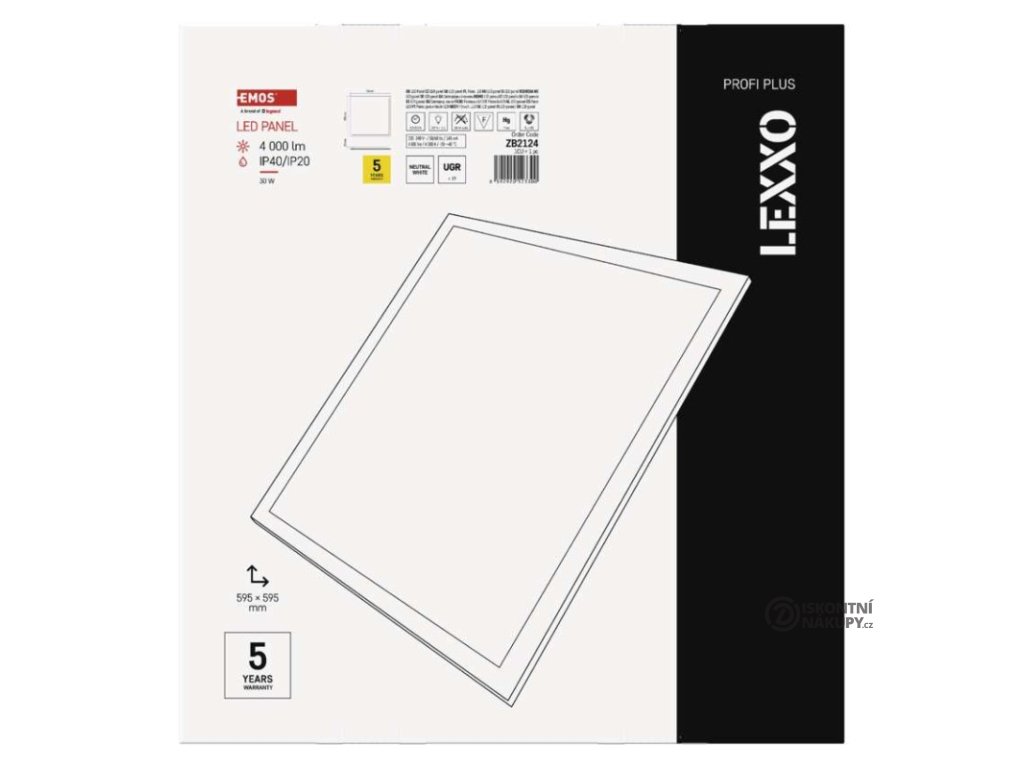 barva světla: neutrální bílá|barva těla: bílá|dálkový ovladač: ne|další funkce: –|do chodby a na schodiště: ne|do dílny a garáže: ne|do kanceláře: ano|do koupelny: ne|do kuchyně: ne|do obýváku, ložnice a dětského pokoje: ne|dosah senzoru: neuvádí se|flicker-free: ano|frekvence: 50/60 Hz|index podání barev (CRI): Ra > 80|jazyky aplikace: –|kategorie: PROFI PLUS|kompatibilita: –|krytí: IP40/IP20|materiál difuzoru: plast (PC)|materiál LGP: neuvádí se|materiál těla: ocelový plech|montážní otvor: neuvádí se|možnost stmívání: ne|náhrada za žárovku: 4× 18 W CFL|napětí: 220–240 V|na zahradu a balkon: ne|notifikace do mobilní aplikace: ne|obsah balení: –|ovládání hlasovými asistenty: ne|podporované OS: –|pohybový senzor: ne|přenosová frekvence: –|příkon: 30 W|prodejní obal: 1 ks, krabice|protokol: –|proud: 145 mA|řada: LEXXO|rozměr: 595 × 595 × 25 mm|světelná účinnost: 133 lm/W|světelný tok: 4 000 lm|teplota chromatičnosti: 4 000 K|tvar: čtverec|typ difuzoru: mikroprizmatický|typ svítidla: panel|účiník: > 0,9|UGR<: 19|úhel vyzařování: 90°|umístění: stropní|výstupní proud ze zdroje: 650 mA|záruční doba: 5 let|zdroj světla: LED|životnost: 50 000 hodin|způsob montáže: vestavnéDoplňkové parametry