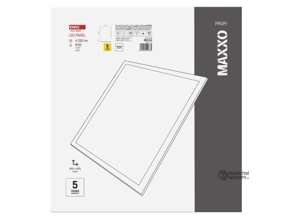 barva světla: neutrální bílá|barva těla: bílá|dálkový ovladač: ne|další funkce: –|do chodby a na schodiště: ne|do dílny a garáže: ne|do kanceláře: ano|do koupelny: ne|do kuchyně: ne|do obýváku, ložnice a dětského pokoje: ano|dosah senzoru: nemá senzor|flicker-free: ano|frekvence: 50/60 Hz|index podání barev (CRI): Ra > 80|jazyky aplikace: –|kategorie: PROFI|kompatibilita: –|krytí: IP20|materiál difuzoru: plast (PS)|materiál LGP: PMMA|materiál těla: hliník|montážní otvor: neuvádí se|možnost stmívání: ne|náhrada za žárovku: 4× 18 W CFL|napětí: 220–240 V|na zahradu a balkon: ne|notifikace do mobilní aplikace: ne|obsah balení: –|ovládání hlasovými asistenty: ne|podporované OS: –|pohybový senzor: ne|přenosová frekvence: –|příkon: 36 W|prodejní obal: 1 ks, krabice|protokol: –|proud: 155 mA|řada: MAXXO|rozměr: 595 × 595 × 10 mm|světelná účinnost: 120 lm/W|světelný tok: 4 320 lm|teplota chromatičnosti: 4 000 K|tvar: čtverec|typ difuzoru: mléčný|typ svítidla: panel|účiník: > 0,9|UGR<: 22|úhel vyzařování: 120°|umístění: stropní|výstupní proud ze zdroje: 900 mA|záruční doba: 5 let|zdroj světla: LED|životnost: 50 000 hodin|způsob montáže: vestavnéPopis produktu