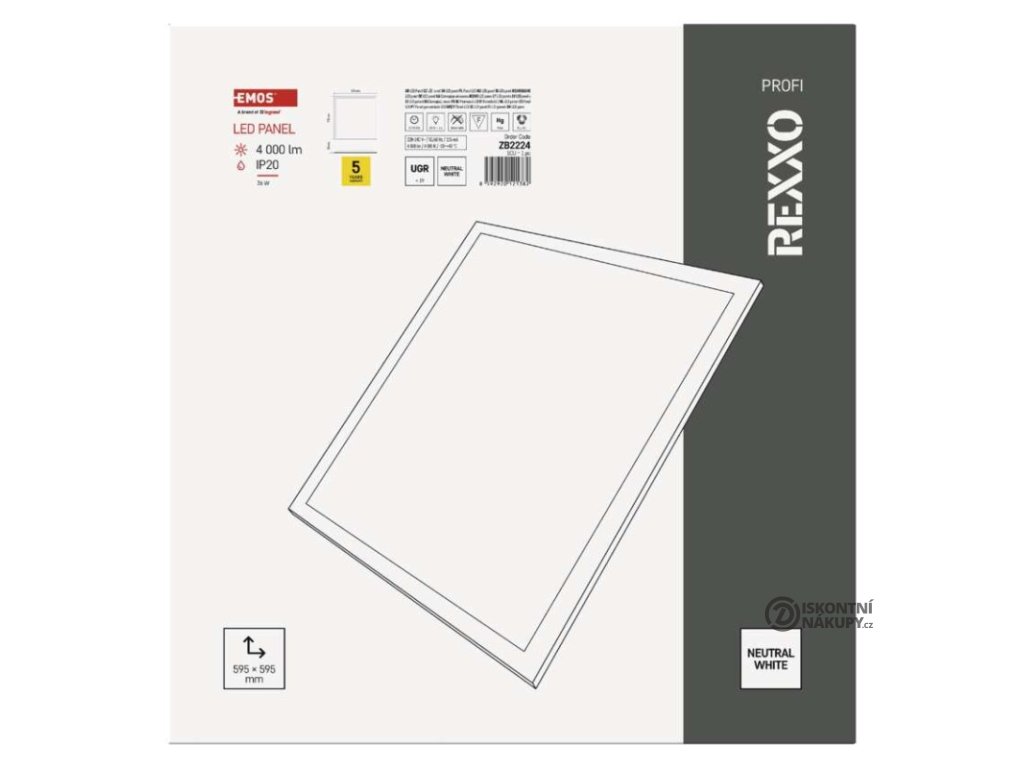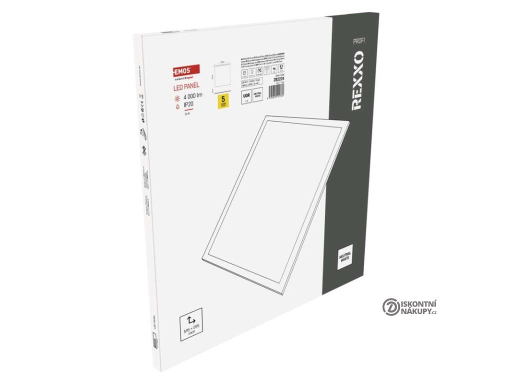barva světla: neutrální bílá|barva těla: bílá|dálkový ovladač: ne|další funkce: –|do chodby a na schodiště: ne|do dílny a garáže: ne|do kanceláře: ano|do koupelny: ne|do kuchyně: ne|do obýváku, ložnice a dětského pokoje: ne|dosah senzoru: –|flicker-free: ano|frekvence: 50/60 Hz|index podání barev (CRI): Ra > 80|jazyky aplikace: –|kategorie: PROFI|kompatibilita: –|krytí: IP20|materiál difuzoru: plast (PC)|materiál LGP: –|materiál těla: ocelový plech|montážní otvor: –|možnost stmívání: ne|náhrada za žárovku: 4× 18 W CFL|napětí: 220–240 V|na zahradu a balkon: ne|notifikace do mobilní aplikace: –|obsah balení: –|ovládání hlasovými asistenty: –|podporované OS: –|pohybový senzor: ne|přenosová frekvence: –|příkon: 36 W|prodejní obal: 1 ks, krabice|protokol: –|proud: 155 mA|řada: REXXO|rozměr: 595 × 595 × 24 mm|světelná účinnost: 110 lm/W|světelný tok: 4 000 lm|teplota chromatičnosti: 4 000 K|tvar: čtverec|typ difuzoru: mléčný|typ svítidla: panel|účiník: > 0,9|UGR<: 19|úhel vyzařování: 90°|umístění: stropní|výstupní proud ze zdroje: 850 mA|záruční doba: 5 let|zdroj světla: LED|životnost: 50 000 hodin|způsob montáže: vestavnéDoplňkové parametry