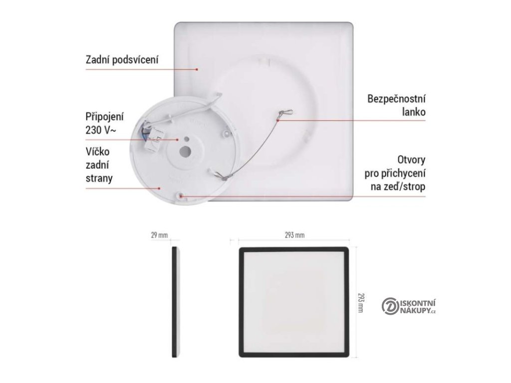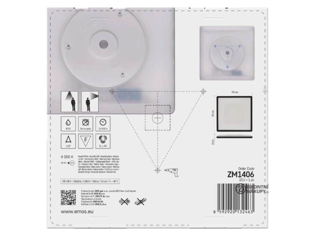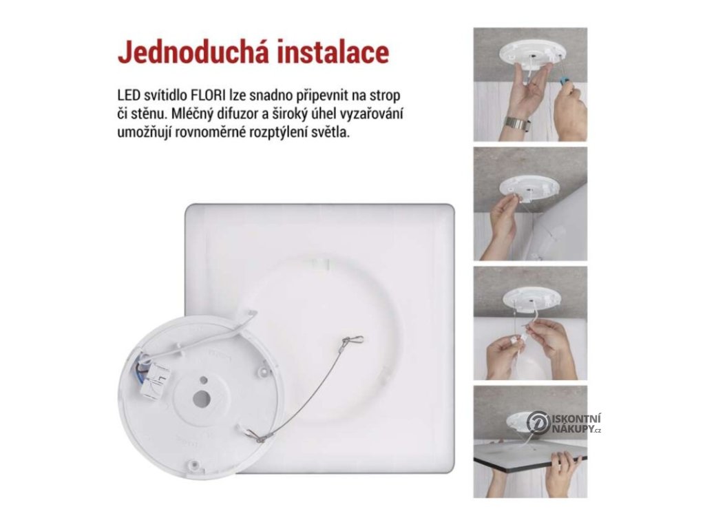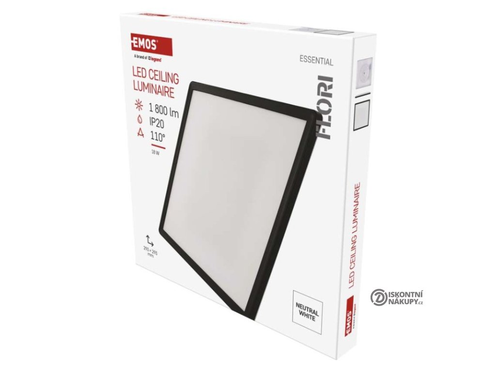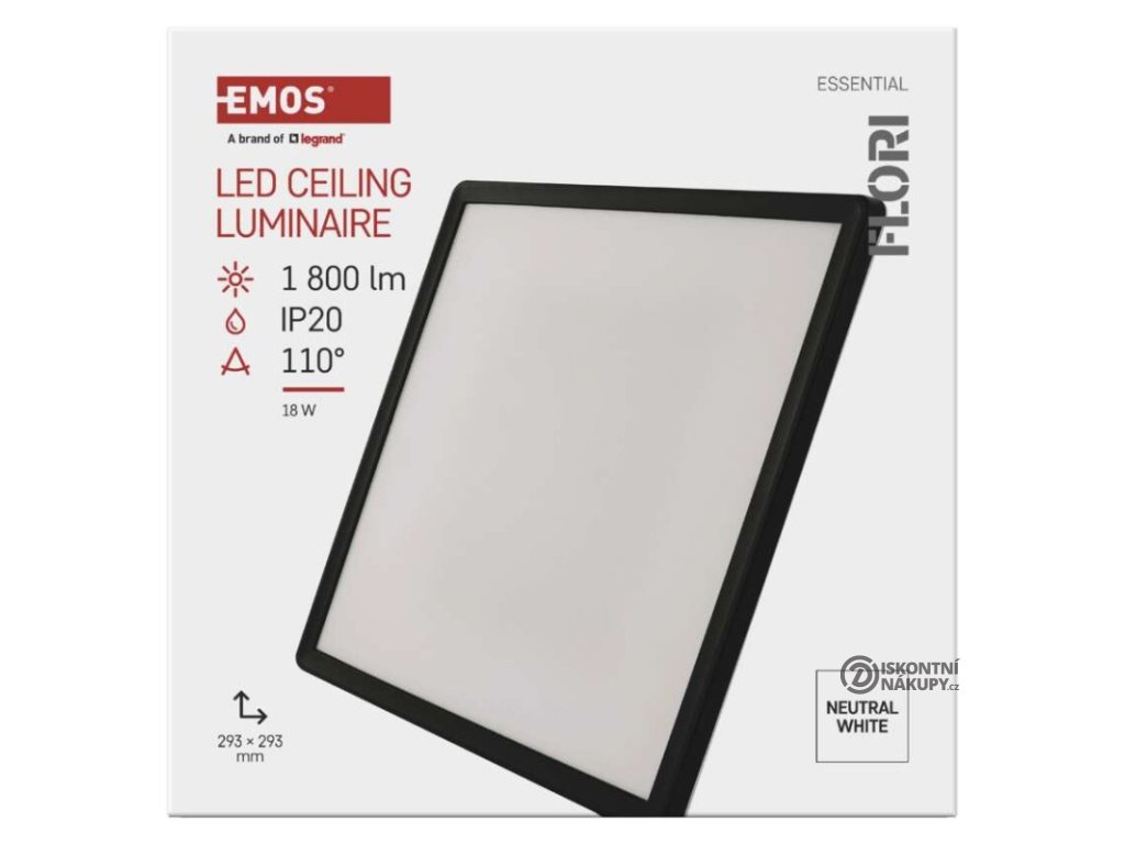 barva světla: neutrální bílá|barva těla: černá|dálkový ovladač: ne|do chodby a na schodiště: ano|do dílny a garáže: ne|do kanceláře: ne|do koupelny: ne|do kuchyně: ano|do obýváku, ložnice a dětského pokoje: ano|dosah senzoru: neuvádí se|flicker-free: neuvádí se|frekvence: 50/60 Hz|index podání barev (CRI): Ra > 80|kategorie: ESSENTIAL|krytí: IP20|materiál difuzoru: plast|materiál LGP: neuvádí se|materiál těla: plast|montážní otvor: neuvádí se|možnost stmívání: ne|náhrada za žárovku: 115 W|napětí: 220–240 V~|na zahradu a balkon: ne|pohybový senzor: ne|příkon: 18 W|prodejní obal: 1 ks, krabice|proud: 134 mA|řada: FLORI|rozměr: 293 × 293 × 29 mm|světelná účinnost: 100 lm/W|světelný tok: 1 800 lm|teplota chromatičnosti: 4 000 K|tvar: čtverec|typ difuzoru: mléčný|typ svítidla: klasické svítidlo|účiník: > 0,5|UGR<: neuvádí se|úhel vyzařování: 110°|umístění: stropní/nástěnné|výstupní proud ze zdroje: neuvádí se|záruční doba: 2 roky|zdroj světla: LED|životnost: 15 000 hodin|způsob montáže: přisazenéDoplňkové parametry