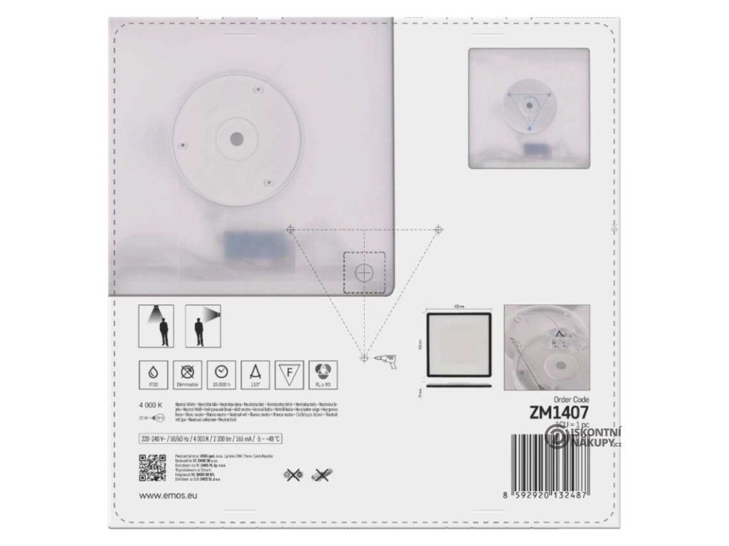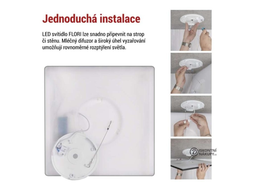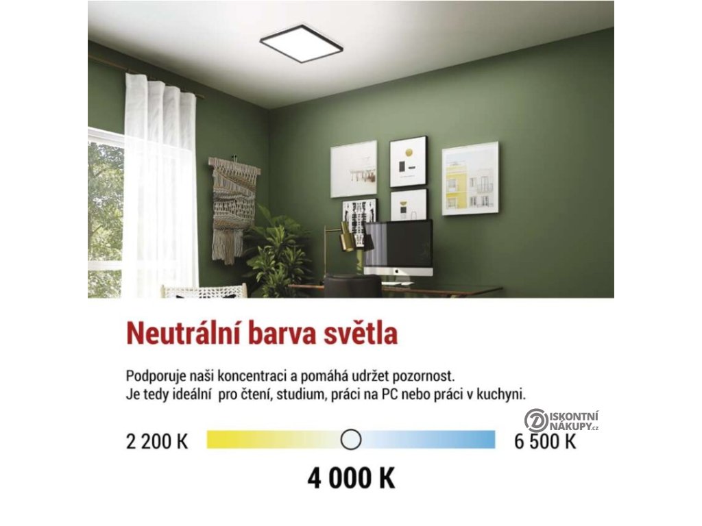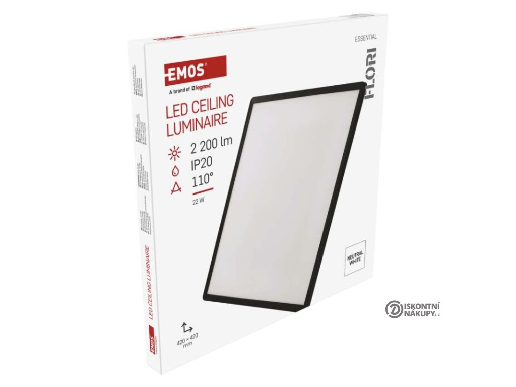 barva světla: neutrální bílá|barva těla: černá|dálkový ovladač: ne|do chodby a na schodiště: ano|do dílny a garáže: ne|do kanceláře: ne|do koupelny: ne|do kuchyně: ano|do obýváku, ložnice a dětského pokoje: ano|dosah senzoru: neuvádí se|flicker-free: neuvádí se|frekvence: 50/60 Hz|index podání barev (CRI): Ra > 80|kategorie: ESSENTIAL|krytí: IP20|materiál difuzoru: plast|materiál LGP: neuvádí se|materiál těla: plast|montážní otvor: neuvádí se|možnost stmívání: ne|náhrada za žárovku: 130 W|napětí: 220–240 V~|na zahradu a balkon: ne|pohybový senzor: ne|příkon: 22 W|prodejní obal: 1 ks, krabice|proud: 165 mA|řada: FLORI|rozměr: 420 × 420 × 29 mm|světelná účinnost: 100 lm/W|světelný tok: 2 200 lm|teplota chromatičnosti: 4 000 K|tvar: čtverec|typ difuzoru: mléčný|typ svítidla: klasické svítidlo|účiník: > 0,5|UGR<: neuvádí se|úhel vyzařování: 110°|umístění: stropní/nástěnné|výstupní proud ze zdroje: neuvádí se|záruční doba: 2 roky|zdroj světla: LED|životnost: 15 000 hodin|způsob montáže: přisazenéDoplňkové parametry