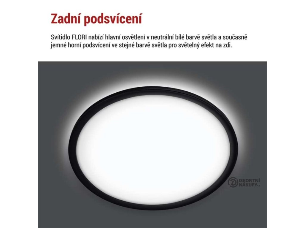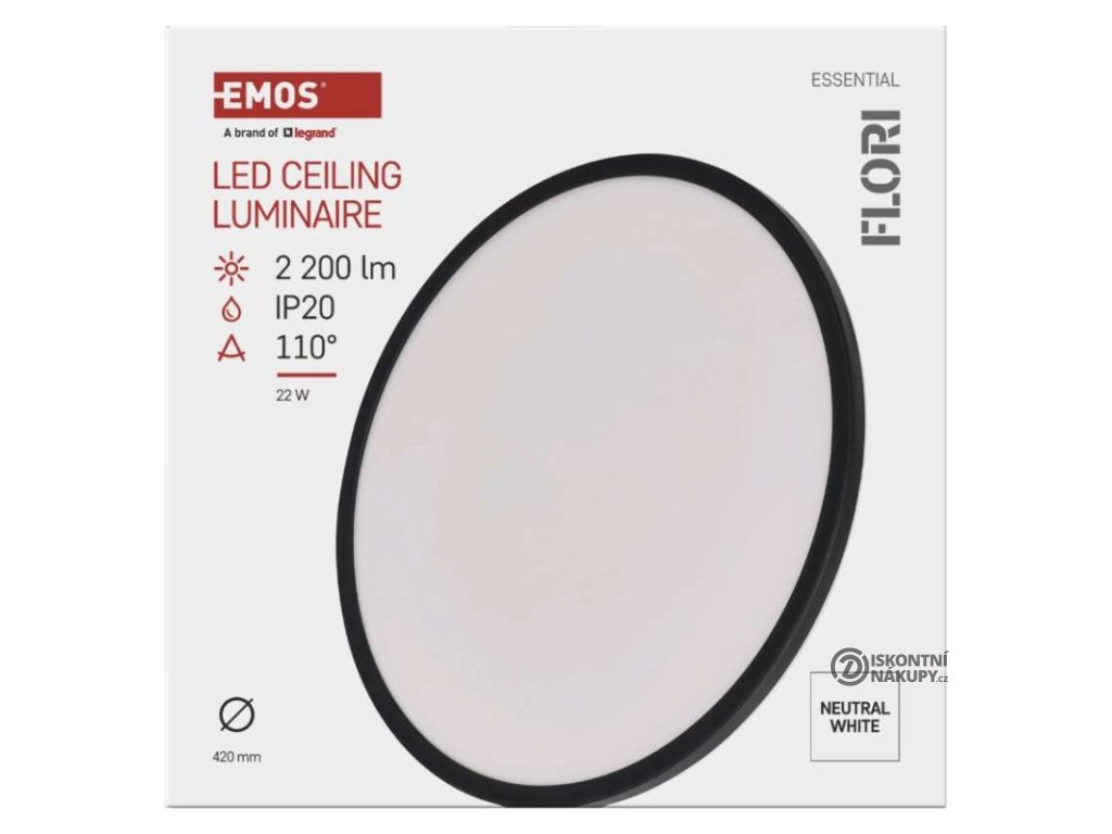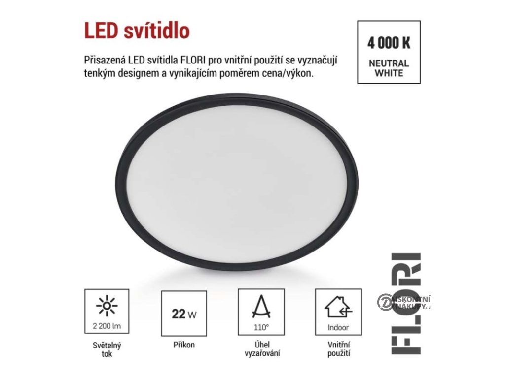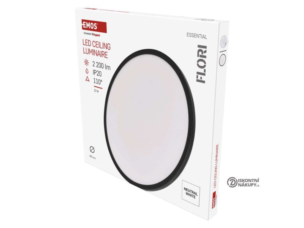 barva světla: neutrální bílá|barva těla: černá|dálkový ovladač: ne|do chodby a na schodiště: ano|do dílny a garáže: ne|do kanceláře: ne|do koupelny: ne|do kuchyně: ano|do obýváku, ložnice a dětského pokoje: ano|dosah senzoru: neuvádí se|flicker-free: neuvádí se|frekvence: 50/60 Hz|index podání barev (CRI): Ra > 80|kategorie: ESSENTIAL|krytí: IP20|materiál difuzoru: plast|materiál LGP: neuvádí se|materiál těla: plast|montážní otvor: neuvádí se|možnost stmívání: ne|náhrada za žárovku: 130 W|napětí: 220–240 V~|na zahradu a balkon: ne|pohybový senzor: ne|příkon: 22 W|prodejní obal: 1 ks, krabice|proud: 165 mA|řada: FLORI|rozměr: průměr 420 × 29 mm|světelná účinnost: 100 lm/W|světelný tok: 2 200 lm|teplota chromatičnosti: 4 000 K|tvar: kruh|typ difuzoru: mléčný|typ svítidla: klasické svítidlo|účiník: > 0,5|UGR<: neuvádí se|úhel vyzařování: 110°|umístění: stropní/nástěnné|výstupní proud ze zdroje: neuvádí se|záruční doba: 2 roky|zdroj světla: LED|životnost: 15 000 hodin|způsob montáže: přisazenéDoplňkové parametry