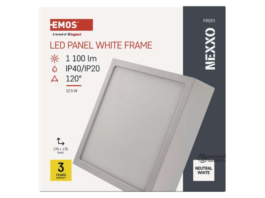 barva světla: neutrální bílá|barva těla: bílá|dálkový ovladač: ne|do chodby a na schodiště: ano|do dílny a garáže: ne|do kanceláře: ano|do koupelny: ne|do kuchyně: ano|do obýváku, ložnice a dětského pokoje: ano|dosah senzoru: nemá senzor|flicker-free: nebliká|frekvence: 50/60 Hz|index podání barev (CRI): Ra > 80|kategorie: PROFI|krytí: IP20/IP40|materiál difuzoru: plast (PMMA)|materiál LGP: PMMA|materiál těla: ocelový plech|montážní otvor: neuvádí se|možnost stmívání: ne|náhrada za žárovku: 75 W|napětí: 220–240 V|na zahradu a balkon: ne|pohybový senzor: ne|příkon: 12,5 W|prodejní obal: 1 ks, krabice|proud: 300 mA|řada: NEXXO|rozměr: 170 × 170 × 42 mm|světelná účinnost: 90 lm/W|světelný tok: 1 100 lm|teplota chromatičnosti: 4 000 K|tvar: čtverec|typ difuzoru: mléčný|typ svítidla: klasické svítidlo|účiník: > 0,5|UGR<: neuvádí se|úhel vyzařování: 120°|umístění: stropní/nástěnné|výstupní proud ze zdroje: neuvádí se|záruční doba: 3 roky|zdroj světla: LED|životnost: 30 000 hodin|způsob montáže: přisazenéDoplňkové parametry