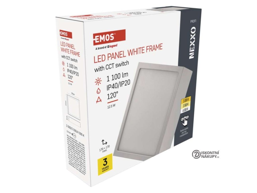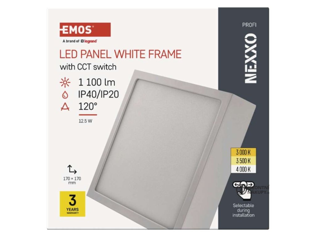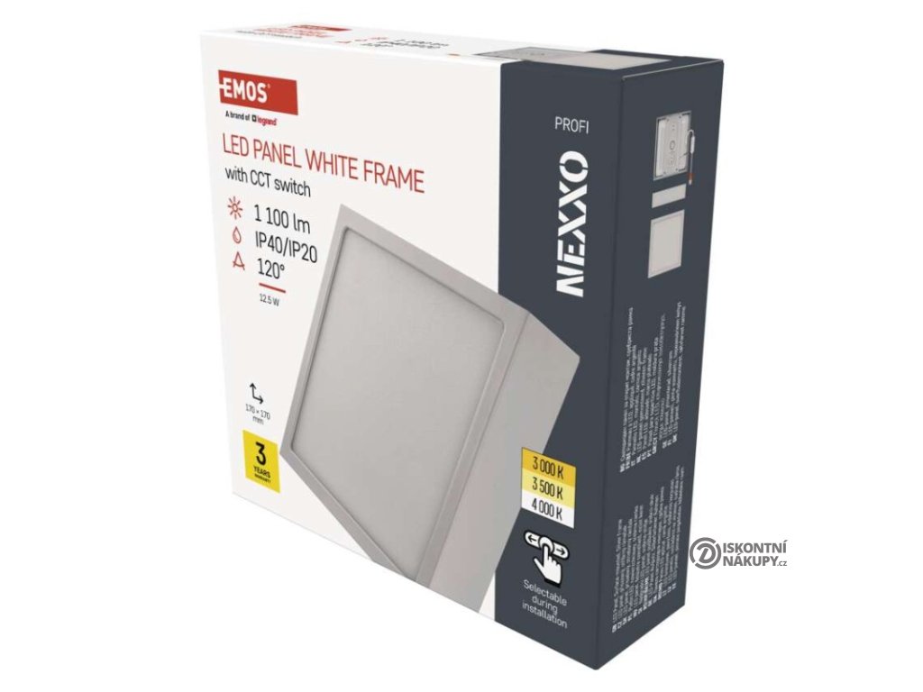 barva světla: teplá bílá–neutrální bílá|barva těla: bílá|dálkový ovladač: ne|do chodby a na schodiště: ano|do dílny a garáže: ne|do kanceláře: ano|do koupelny: ne|do kuchyně: ano|do obýváku, ložnice a dětského pokoje: ano|dosah senzoru: nemá senzor|flicker-free: ano|frekvence: 50/60 Hz|index podání barev (CRI): Ra > 80|kategorie: PROFI|krytí: IP40/IP20|materiál difuzoru: plast (PMMA)|materiál LGP: PMMA|materiál těla: ocelový plech|montážní otvor: neuvádí se|možnost stmívání: ne|náhrada za žárovku: 75 W|napětí: 220–240 V|na zahradu a balkon: ne|pohybový senzor: ne|příkon: 12,5 W|prodejní obal: 1 ks, krabice|proud: 300 mA|řada: NEXXO|rozměr: 170 × 170 × 42 mm|světelná účinnost: 90 lm/W|světelný tok: 1 100 lm|teplota chromatičnosti: 3 000/3 500/4 000 K|tvar: čtverec|typ difuzoru: mléčný|typ svítidla: klasické svítidlo|účiník: > 0,5|UGR<: neuvádí se|úhel vyzařování: 120°|umístění: stropní/nástěnné|výstupní proud ze zdroje: neuvádí se|záruční doba: 3 roky|zdroj světla: LED|životnost: 30 000 hodin|způsob montáže: přisazenéVýhody produktu