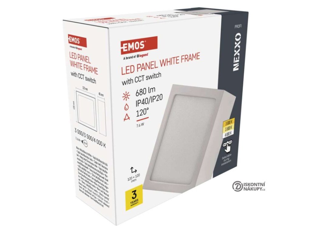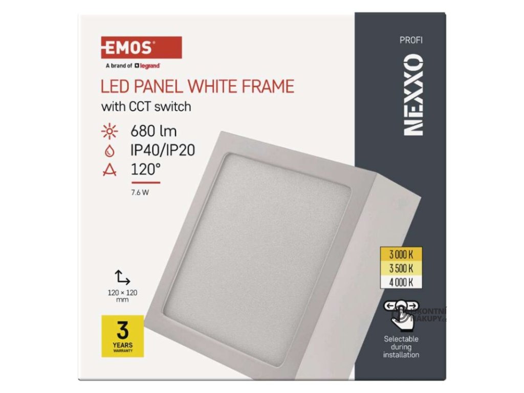 barva světla: teplá bílá–neutrální bílá|barva těla: bílá|dálkový ovladač: ne|do chodby a na schodiště: ano|do dílny a garáže: ne|do kanceláře: ano|do koupelny: ne|do kuchyně: ano|do obýváku, ložnice a dětského pokoje: ano|dosah senzoru: nemá senzor|flicker-free: ano|frekvence: 50/60 Hz|index podání barev (CRI): Ra > 80|kategorie: PROFI|krytí: IP40/IP20|materiál difuzoru: plast (PMMA)|materiál LGP: PMMA|materiál těla: ocelový plech|montážní otvor: neuvádí se|možnost stmívání: ne|náhrada za žárovku: 50 W|napětí: 220–240 V|na zahradu a balkon: ne|pohybový senzor: ne|příkon: 7,6 W|prodejní obal: 1 ks, krabice|proud: 300 mA|řada: NEXXO|rozměr: 120 × 120 × 40 mm|světelná účinnost: 90 lm/W|světelný tok: 680 lm|teplota chromatičnosti: 3 000/3 500/4 000 K|tvar: čtverec|typ difuzoru: mléčný|typ svítidla: klasické svítidlo|účiník: > 0,5|UGR<: neuvádí se|úhel vyzařování: 120°|umístění: stropní/nástěnné|výstupní proud ze zdroje: neuvádí se|záruční doba: 3 roky|zdroj světla: LED|životnost: 30 000 hodin|způsob montáže: přisazenéVýhody produktu