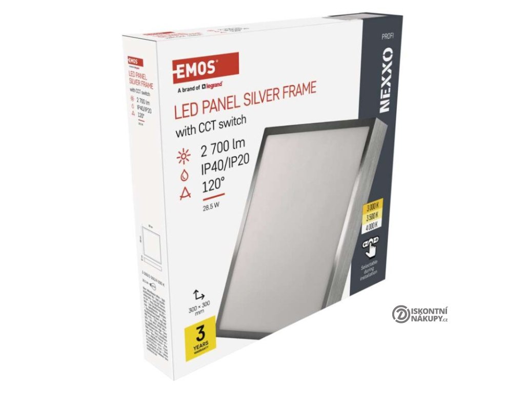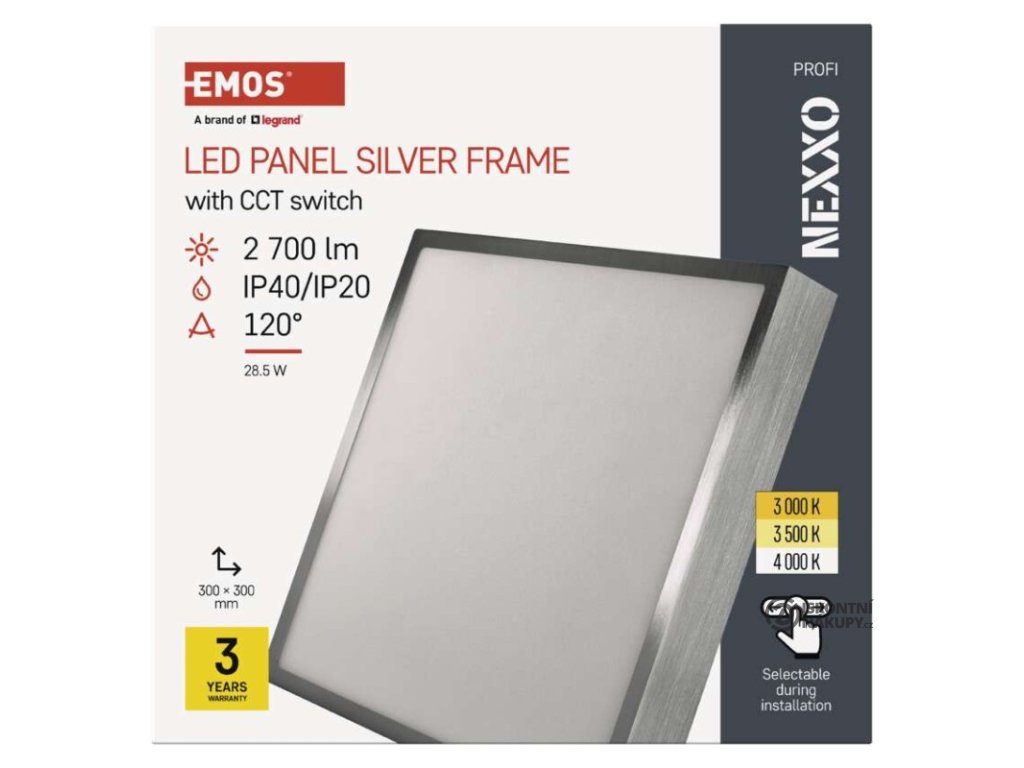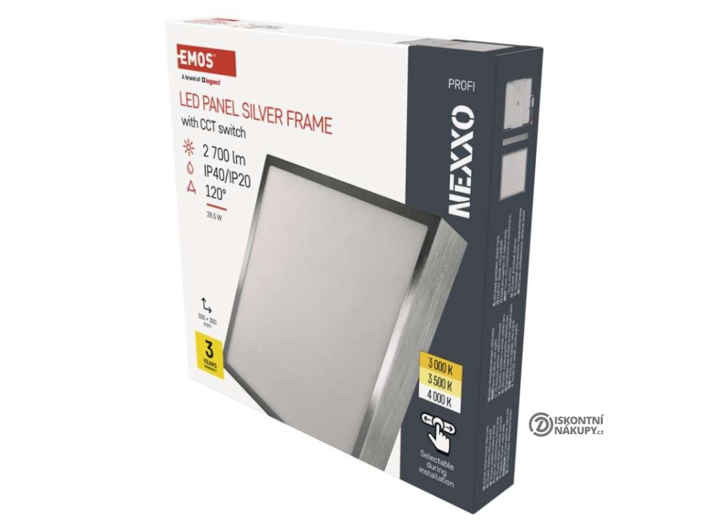 barva světla: teplá bílá–neutrální bílá|barva těla: broušený nikl|dálkový ovladač: ne|do chodby a na schodiště: ano|do dílny a garáže: ne|do kanceláře: ano|do koupelny: ne|do kuchyně: ano|do obýváku, ložnice a dětského pokoje: ano|dosah senzoru: nemá senzor|flicker-free: ano|frekvence: 50/60 Hz|index podání barev (CRI): Ra > 80|kategorie: PROFI|krytí: IP40/IP20|materiál difuzoru: plast (PMMA)|materiál LGP: PMMA|materiál těla: ocelový plech|montážní otvor: neuvádí se|možnost stmívání: ne|náhrada za žárovku: 50 W|napětí: 220–240 V|na zahradu a balkon: ne|pohybový senzor: ne|příkon: 28,5 W|prodejní obal: 1 ks, krabice|proud: 700 mA|řada: NEXXO|rozměr: 300 × 300 × 42 mm|světelná účinnost: 95 lm/W|světelný tok: 2 700 lm|teplota chromatičnosti: 3 000/3 500/4 000 K|tvar: čtverec|typ difuzoru: mléčný|typ svítidla: klasické svítidlo|účiník: > 0,9|UGR<: neuvádí se|úhel vyzařování: 120°|umístění: stropní/nástěnné|výstupní proud ze zdroje: neuvádí se|záruční doba: 3 roky|zdroj světla: LED|životnost: 30 000 hodin|způsob montáže: přisazenéVýhody produktu