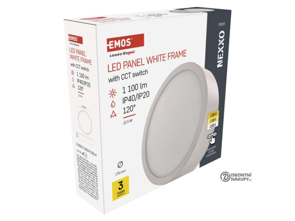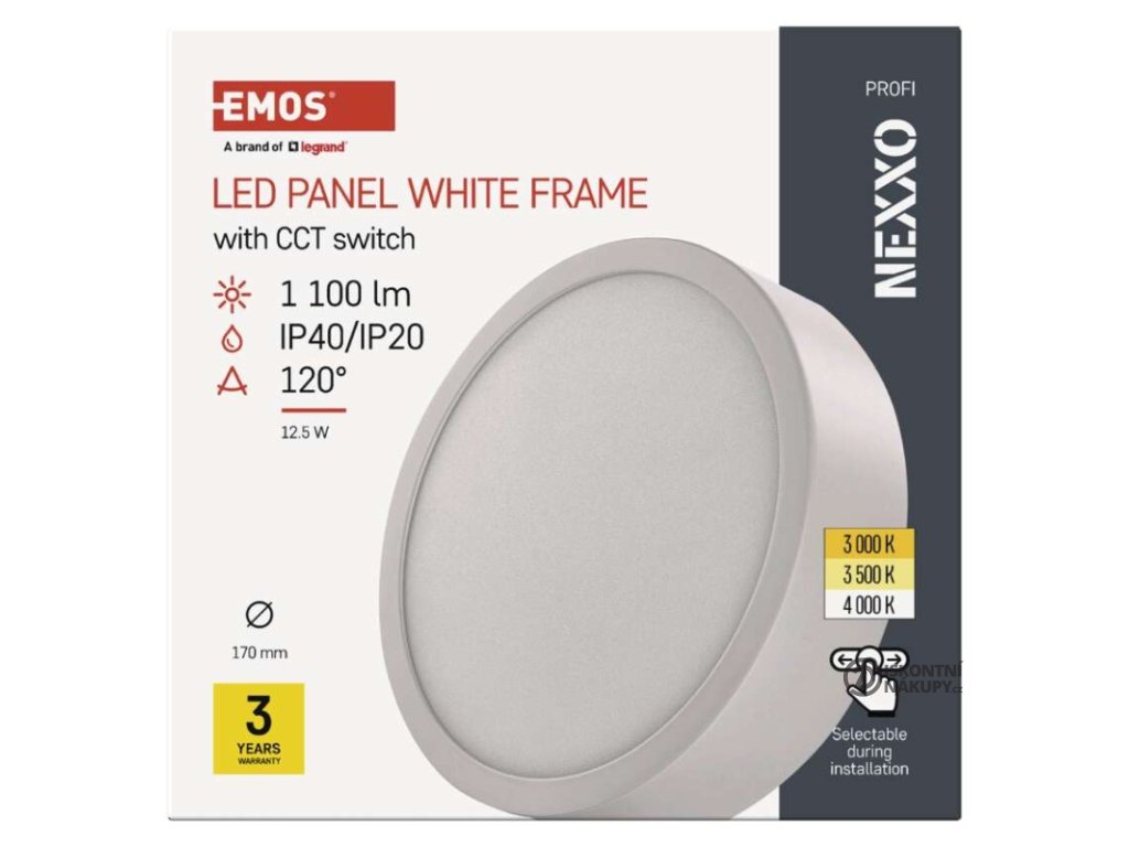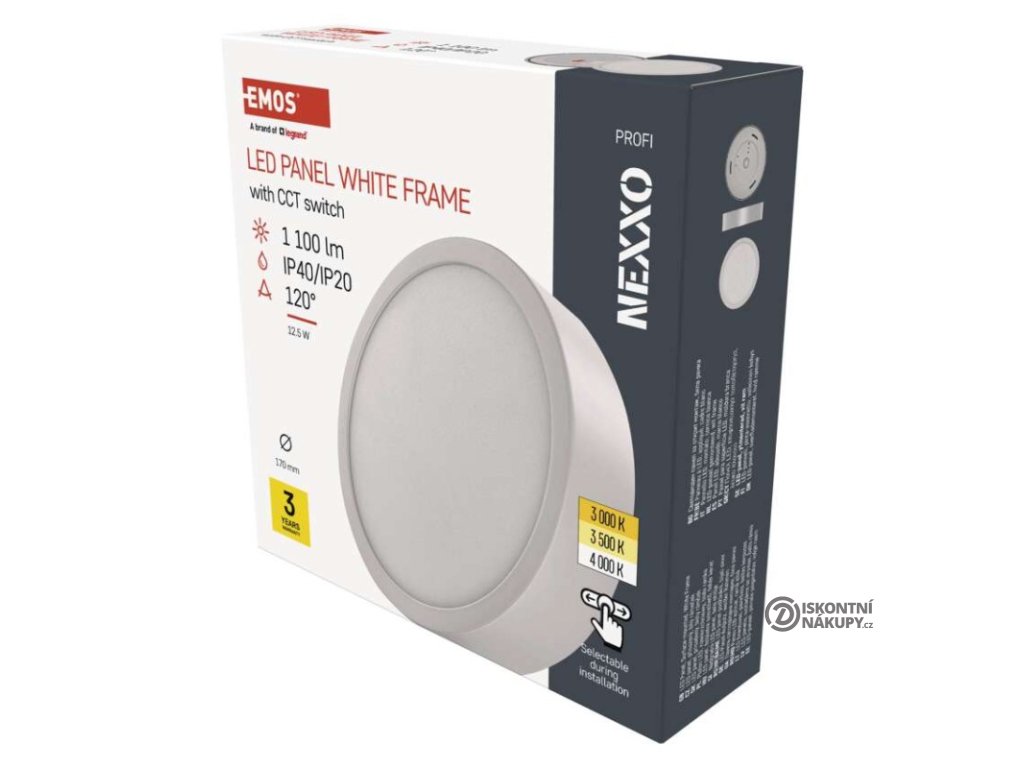 barva světla: teplá bílá–neutrální bílá|barva těla: bílá|dálkový ovladač: ne|do chodby a na schodiště: ano|do dílny a garáže: ne|do kanceláře: ano|do koupelny: ne|do kuchyně: ano|do obýváku, ložnice a dětského pokoje: ano|dosah senzoru: nemá senzor|flicker-free: ano|frekvence: 50/60 Hz|index podání barev (CRI): Ra > 80|kategorie: PROFI|krytí: IP40/IP20|materiál difuzoru: plast (PMMA)|materiál LGP: PMMA|materiál těla: ocelový plech|montážní otvor: neuvádí se|možnost stmívání: ne|náhrada za žárovku: 75 W|napětí: 220–240 V|na zahradu a balkon: ne|pohybový senzor: ne|příkon: 12,5 W|prodejní obal: 1 ks, krabice|proud: 300 mA|řada: NEXXO|rozměr: průměr 170 × 42 mm|světelná účinnost: 90 lm/W|světelný tok: 1 100 lm|teplota chromatičnosti: 3 000/3 500/4 000 K|tvar: kruh|typ difuzoru: mléčný|typ svítidla: klasické svítidlo|účiník: > 0,5|UGR<: neuvádí se|úhel vyzařování: 120°|umístění: stropní/nástěnné|výstupní proud ze zdroje: neuvádí se|záruční doba: 3 roky|zdroj světla: LED|životnost: 30 000 hodin|způsob montáže: přisazenéVýhody produktu
