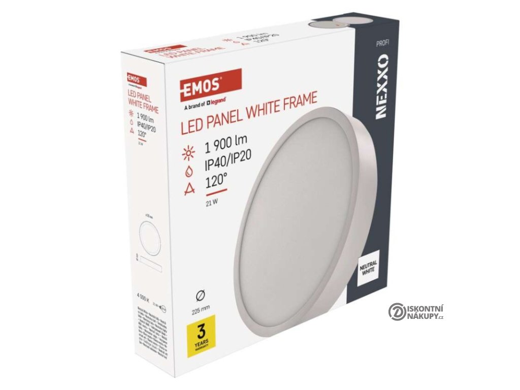 barva světla: neutrální bílá|barva těla: bílá|dálkový ovladač: ne|do chodby a na schodiště: ano|do dílny a garáže: ne|do kanceláře: ano|do koupelny: ne|do kuchyně: ano|do obýváku, ložnice a dětského pokoje: ano|dosah senzoru: nemá senzor|flicker-free: nebliká|frekvence: 50/60 Hz|index podání barev (CRI): Ra > 80|kategorie: PROFI|krytí: IP20/IP40|materiál difuzoru: plast (PMMA)|materiál LGP: PMMA|materiál těla: ocelový plech|montážní otvor: neuvádí se|možnost stmívání: ne|náhrada za žárovku: 120 W|napětí: 220–240 V|na zahradu a balkon: ne|pohybový senzor: ne|příkon: 21 W|prodejní obal: 1 ks, papírová krabička|proud: 700 mA|řada: NEXXO|rozměr: průměr 225 × 42 mm|světelná účinnost: 90 lm/W|světelný tok: 1 900 lm|teplota chromatičnosti: 4 000 K|tvar: kruh|typ difuzoru: mléčný|typ svítidla: klasické svítidlo|účiník: > 0,9|UGR<: neuvádí se|úhel vyzařování: 120°|umístění: stropní/nástěnné|výstupní proud ze zdroje: neuvádí se|záruční doba: 3 roky|zdroj světla: LED|životnost: 30 000 hodin|způsob montáže: přisazenéDoplňkové parametry