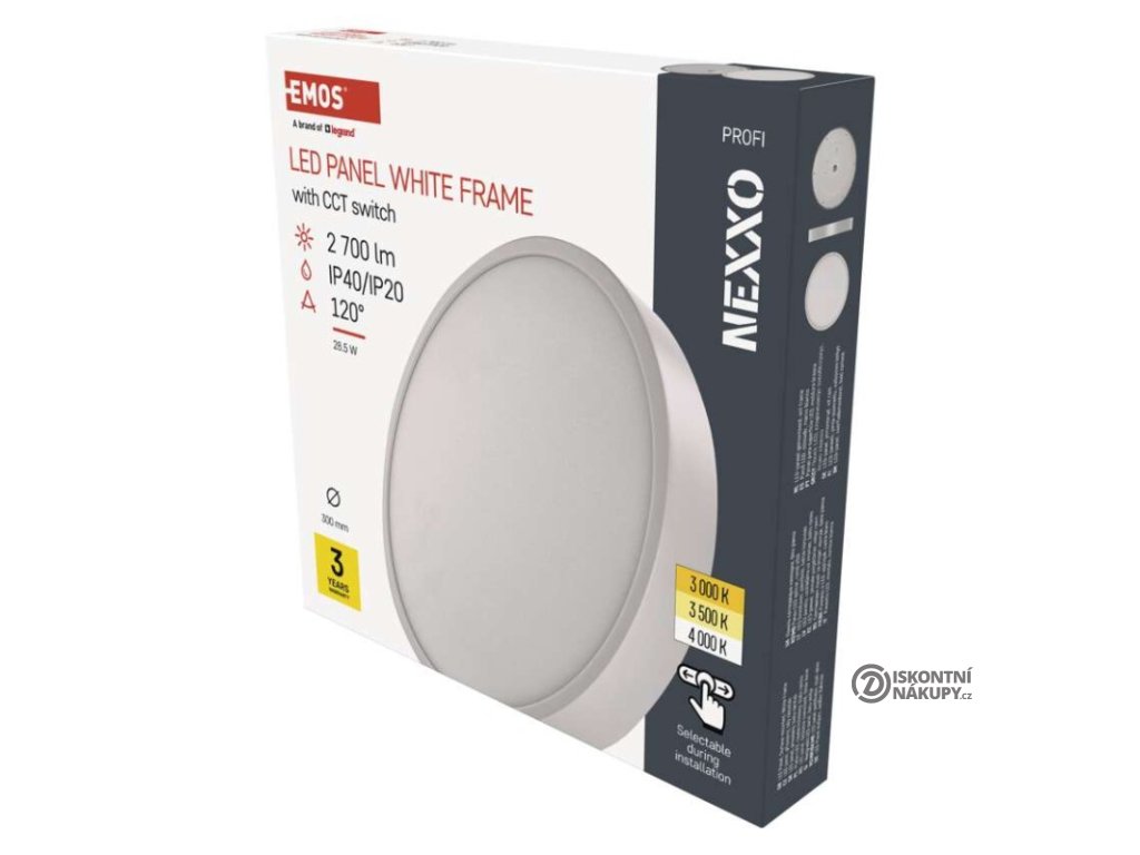 barva světla: teplá bílá–neutrální bílá|barva těla: bílá|dálkový ovladač: ne|do chodby a na schodiště: ano|do dílny a garáže: ne|do kanceláře: ano|do koupelny: ne|do kuchyně: ano|do obýváku, ložnice a dětského pokoje: ano|dosah senzoru: nemá senzor|flicker-free: ano|frekvence: 50/60 Hz|index podání barev (CRI): Ra > 80|kategorie: PROFI|krytí: IP40/IP20|materiál difuzoru: plast (PMMA)|materiál LGP: PMMA|materiál těla: ocelový plech|montážní otvor: neuvádí se|možnost stmívání: ne|náhrada za žárovku: 160 W|napětí: 220–240 V|na zahradu a balkon: ne|pohybový senzor: ne|příkon: 28,5 W|prodejní obal: 1 ks, krabice|proud: 700 mA|řada: NEXXO|rozměr: průměr 300 × 42 mm|světelná účinnost: 95 lm/W|světelný tok: 2 700 lm|teplota chromatičnosti: 3 000/3 500/4 000 K|tvar: kruh|typ difuzoru: mléčný|typ svítidla: klasické svítidlo|účiník: > 0,9|UGR<: neuvádí se|úhel vyzařování: 120°|umístění: stropní/nástěnné|výstupní proud ze zdroje: neuvádí se|záruční doba: 3 roky|zdroj světla: LED|životnost: 30 000 hodin|způsob montáže: přisazenéVýhody produktu