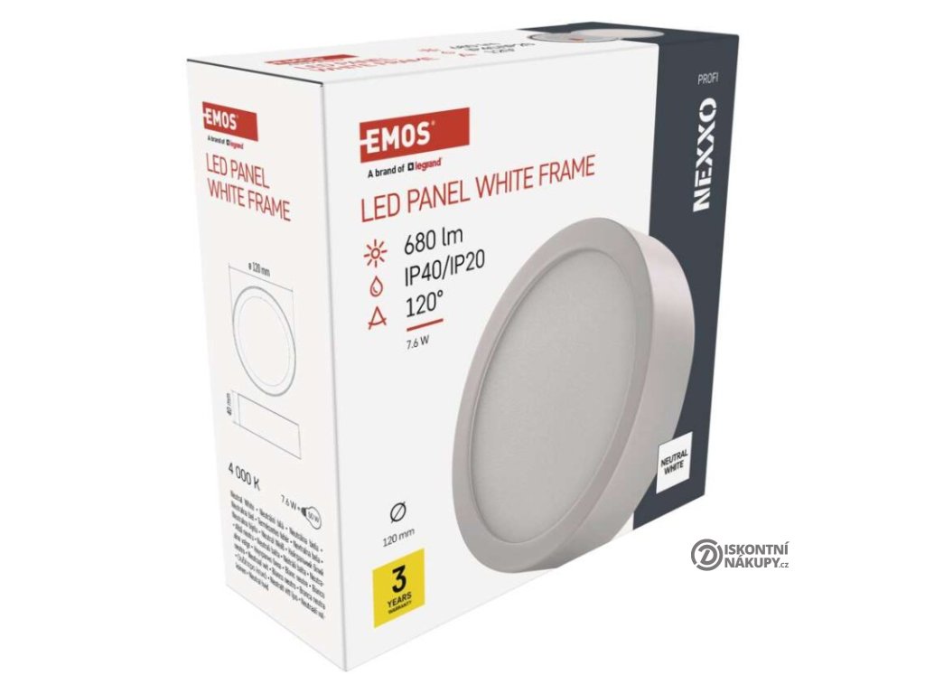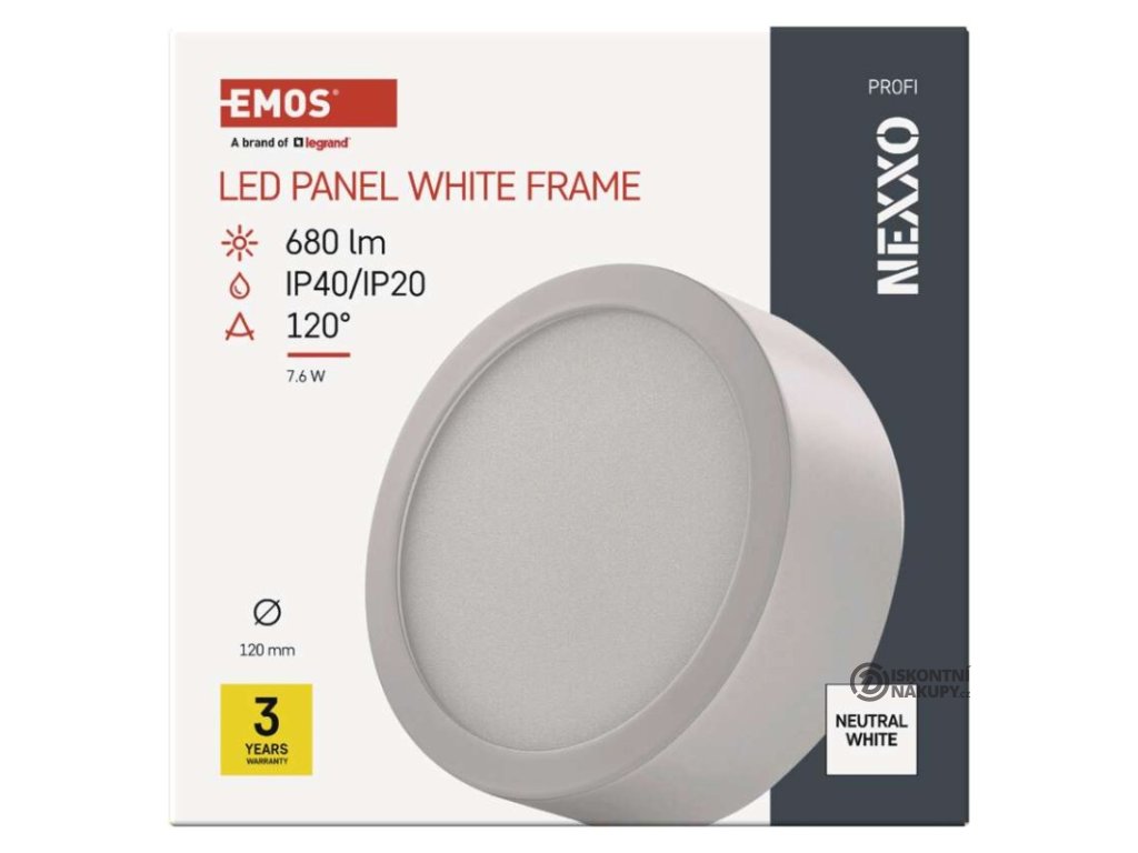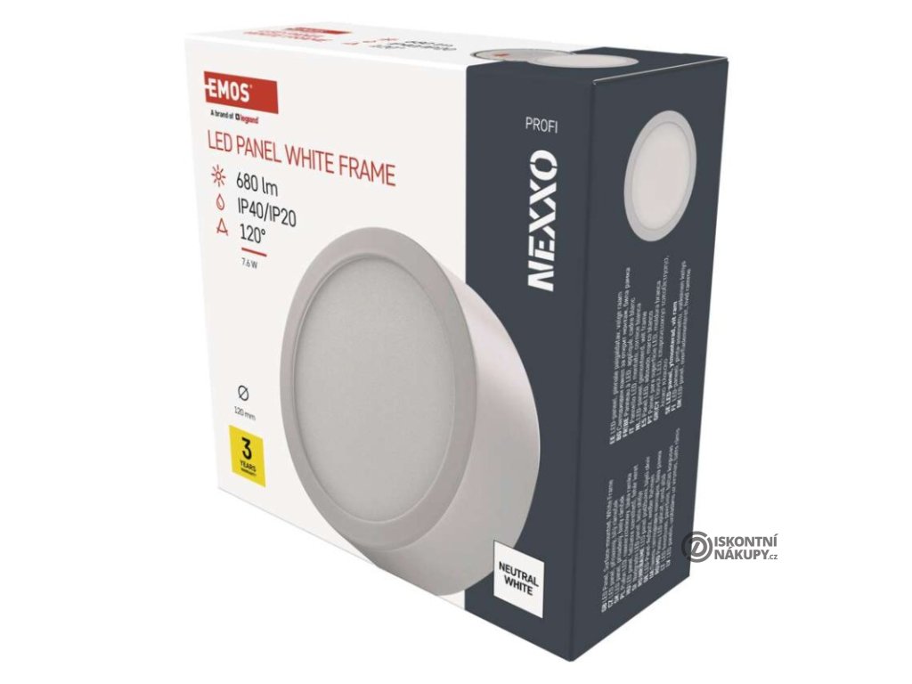 barva světla: neutrální bílá|barva těla: bílá|dálkový ovladač: ne|do chodby a na schodiště: ano|do dílny a garáže: ne|do kanceláře: ano|do koupelny: ne|do kuchyně: ano|do obýváku, ložnice a dětského pokoje: ano|dosah senzoru: nemá senzor|flicker-free: nebliká|frekvence: 50/60 Hz|index podání barev (CRI): Ra > 80|kategorie: PROFI|krytí: IP20/IP40|materiál difuzoru: plast (PMMA)|materiál LGP: PMMA|materiál těla: ocelový plech|montážní otvor: neuvádí se|možnost stmívání: ne|náhrada za žárovku: 50 W|napětí: 220–240 V|na zahradu a balkon: ne|pohybový senzor: ne|příkon: 7,6 W|prodejní obal: 1 ks, papírová krabička|proud: 300 mA|řada: NEXXO|rozměr: průměr 120 × 40 mm|světelná účinnost: 90 lm/W|světelný tok: 680 lm|teplota chromatičnosti: 4 000 K|tvar: kruh|typ difuzoru: mléčný|typ svítidla: klasické svítidlo|účiník: > 0,5|UGR<: neuvádí se|úhel vyzařování: 120°|umístění: stropní/nástěnné|výstupní proud ze zdroje: neuvádí se|záruční doba: 3 roky|zdroj světla: LED|životnost: 30 000 hodin|způsob montáže: přisazenéDoplňkové parametry