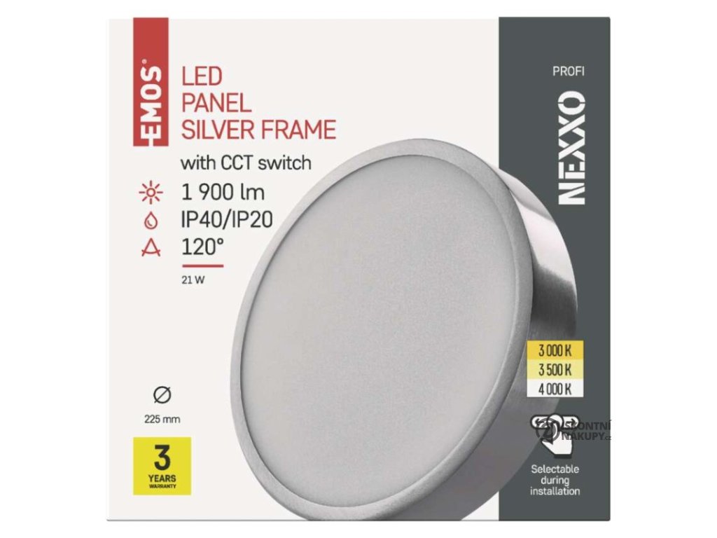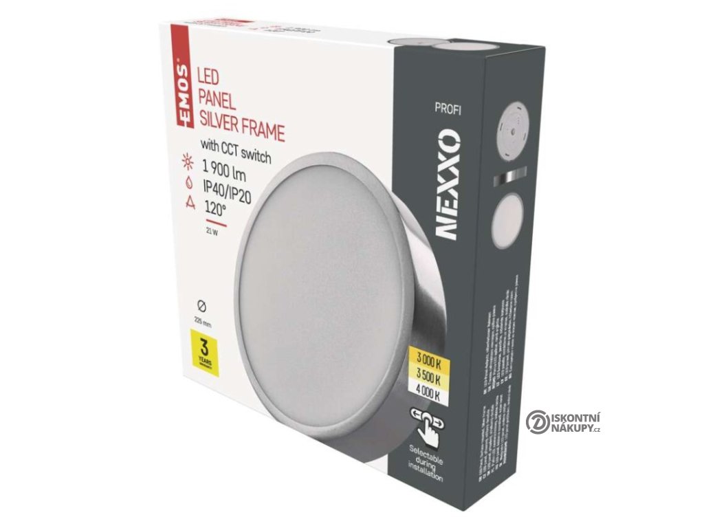barva světla: teplá bílá–neutrální bílá|barva těla: broušený nikl|dálkový ovladač: ne|do chodby a na schodiště: ano|do dílny a garáže: ne|do kanceláře: ano|do koupelny: ne|do kuchyně: ano|do obýváku, ložnice a dětského pokoje: ano|dosah senzoru: nemá senzor|flicker-free: ano|frekvence: 50/60 Hz|index podání barev (CRI): Ra > 80|kategorie: PROFI|krytí: IP40/IP20|materiál difuzoru: plast (PMMA)|materiál LGP: PMMA|materiál těla: ocelový plech|montážní otvor: neuvádí se|možnost stmívání: ne|náhrada za žárovku: 120 W|napětí: 220–240 V|na zahradu a balkon: ne|pohybový senzor: ne|příkon: 21 W|prodejní obal: 1 ks, krabice|proud: 500 mA|řada: NEXXO|rozměr: průměr 225 × 42 mm|světelná účinnost: 90 lm/W|světelný tok: 1 900 lm|teplota chromatičnosti: 3 000/3 500/4 000 K|tvar: kruh|typ difuzoru: mléčný|typ svítidla: klasické svítidlo|účiník: > 0,9|UGR<: neuvádí se|úhel vyzařování: 120°|umístění: stropní/nástěnné|výstupní proud ze zdroje: neuvádí se|záruční doba: 3 roky|zdroj světla: LED|životnost: 30 000 hodin|způsob montáže: přisazenéVýhody produktu