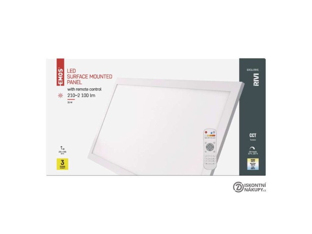 barva světla: teplá bílá–studená bílá|barva těla: bílá|dálkový ovladač: ano|do chodby a na schodiště: ne|do dílny a garáže: ne|do kanceláře: ano|do koupelny: ne|do kuchyně: ano|do obýváku, ložnice a dětského pokoje: ano|dosah senzoru: nemá senzor|flicker-free: ano|frekvence: 50/60 Hz|index podání barev (CRI): Ra > 80|kategorie: EXCLUSIVE|krytí: IP20|materiál difuzoru: plast (PC)|materiál LGP: PS|materiál těla: hliník|montážní otvor: neuvádí se|možnost stmívání: ano|náhrada za žárovku: neuvádí se|napětí: 220–240 V|na zahradu a balkon: ne|pohybový senzor: ne|příkon: 25 W|prodejní obal: 1 ks, krabice|proud: 110 mA|řada: RIVI|rozměr: 295 × 595 × 52 mm|světelná účinnost: 85 lm/W|světelný tok: 210–2 100 lm|teplota chromatičnosti: 2 700–6 000 K|tvar: obdelník|typ difuzoru: mléčný|typ svítidla: klasické svítidlo|účiník: > 0,9|UGR<: 22|úhel vyzařování: 115°|umístění: stropní|výstupní proud ze zdroje: neuvádí se|záruční doba: 3 roky|zdroj světla: LED|životnost: 30 000 hodin|způsob montáže: přisazenéVýhody produktu