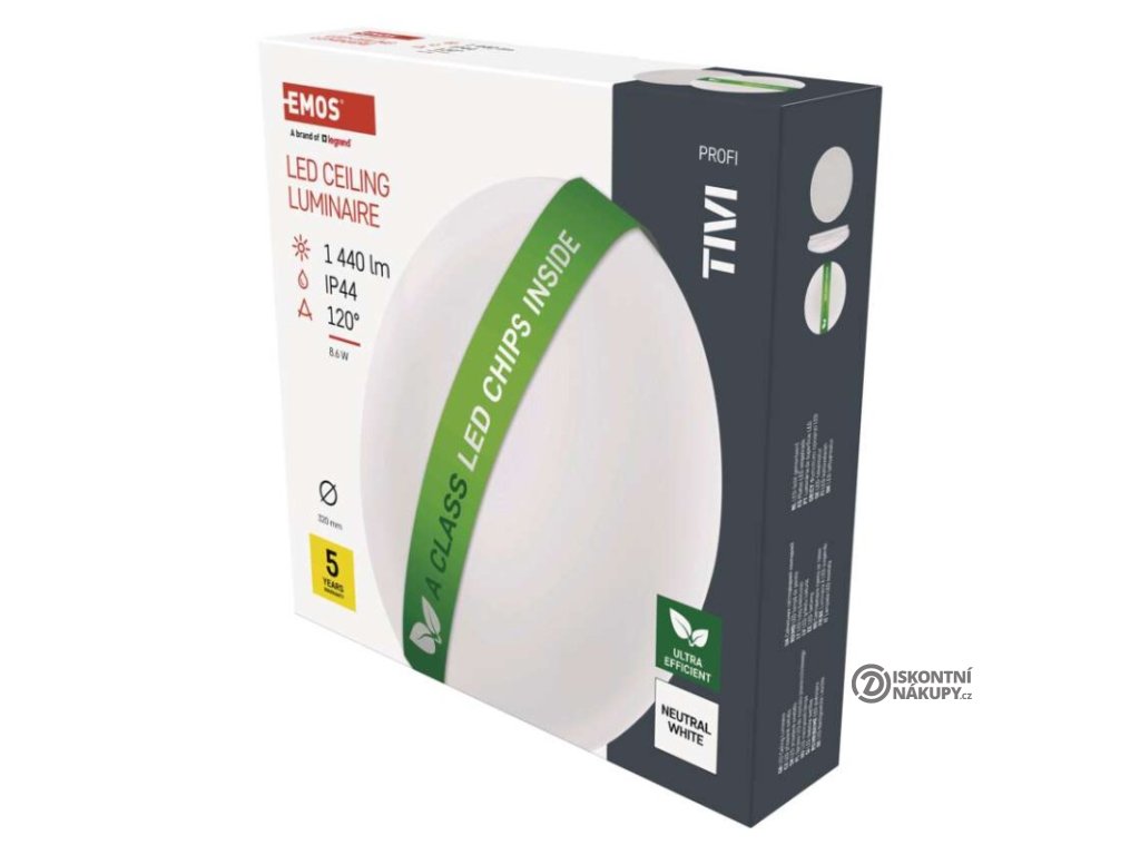 barva světla: neutrální bílá|barva těla: bílá|dálkový ovladač: ne|další funkce: –|do chodby a na schodiště: ano|do dílny a garáže: ano|do kanceláře: ano|do koupelny: ano|do kuchyně: ano|do obýváku, ložnice a dětského pokoje: ano|dosah senzoru: neuvádí se|flicker-free: nebliká|frekvence: 50/60 Hz|index podání barev (CRI): Ra > 80|jazyky aplikace: –|kategorie: PROFI|kompatibilita: –|krytí: IP44|materiál difuzoru: plast|materiál LGP: neuvádí se|materiál těla: ocelový plech|montážní otvor: neuvádí se|možnost stmívání: ne|náhrada za žárovku: 90 W|napětí: 220–240 V|na zahradu a balkon: ano|notifikace do mobilní aplikace: ne|obsah balení: –|ovládání hlasovými asistenty: ne|podporované OS: –|pohybový senzor: ne|přenosová frekvence: –|příkon: 8,6 W|prodejní obal: 1 ks, krabice|protokol: –|proud: 71 mA|řada: TIVI|rozměr: průměr 320 × 70 mm|světelná účinnost: 168 lm/W|světelný tok: 1 440 lm|teplota chromatičnosti: 4 000 K|tvar: kruh|typ difuzoru: mléčný|typ svítidla: klasické svítidlo|účiník: > 0,5|UGR<: neuvádí se|úhel vyzařování: 120°|umístění: stropní/nástěnné|výstupní proud ze zdroje: neuvádí se|záruční doba: 5 let|zdroj světla: LED|životnost: 50 000 hodin|způsob montáže: přisazenéDoplňkové parametry