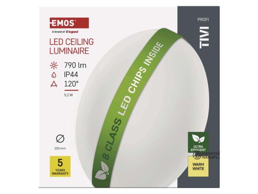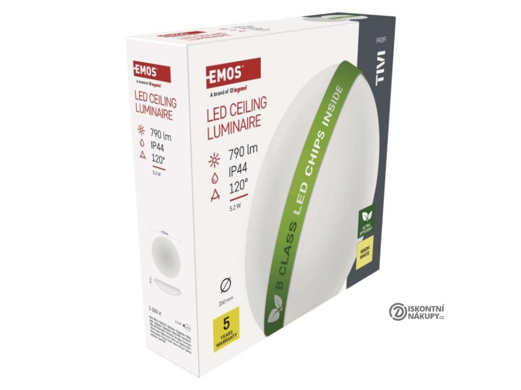 barva světla: teplá bílá|barva těla: bílá|dálkový ovladač: ne|další funkce: –|do chodby a na schodiště: ano|do dílny a garáže: ano|do kanceláře: ano|do koupelny: ano|do kuchyně: ano|do obýváku, ložnice a dětského pokoje: ano|dosah senzoru: neuvádí se|flicker-free: nebliká|frekvence: 50/60 Hz|index podání barev (CRI): Ra > 80|jazyky aplikace: –|kategorie: PROFI|kompatibilita: –|krytí: IP44|materiál difuzoru: plast|materiál LGP: neuvádí se|materiál těla: ocelový plech|montážní otvor: neuvádí se|možnost stmívání: ne|náhrada za žárovku: 60 W|napětí: 220–240 V|na zahradu a balkon: ano|notifikace do mobilní aplikace: ne|obsah balení: –|ovládání hlasovými asistenty: ne|podporované OS: –|pohybový senzor: ne|přenosová frekvence: –|příkon: 5,2 W|prodejní obal: 1 ks, krabice|protokol: –|proud: 45 mA|řada: TIVI|rozměr: průměr 250 × 70 mm|světelná účinnost: 152 lm/W|světelný tok: 790 lm|teplota chromatičnosti: 3 000 K|tvar: kruh|typ difuzoru: mléčný|typ svítidla: klasické svítidlo|účiník: > 0,5|UGR<: neuvádí se|úhel vyzařování: 120°|umístění: stropní/nástěnné|výstupní proud ze zdroje: neuvádí se|záruční doba: 5 let|zdroj světla: LED|životnost: 50 000 hodin|způsob montáže: přisazenéDoplňkové parametry