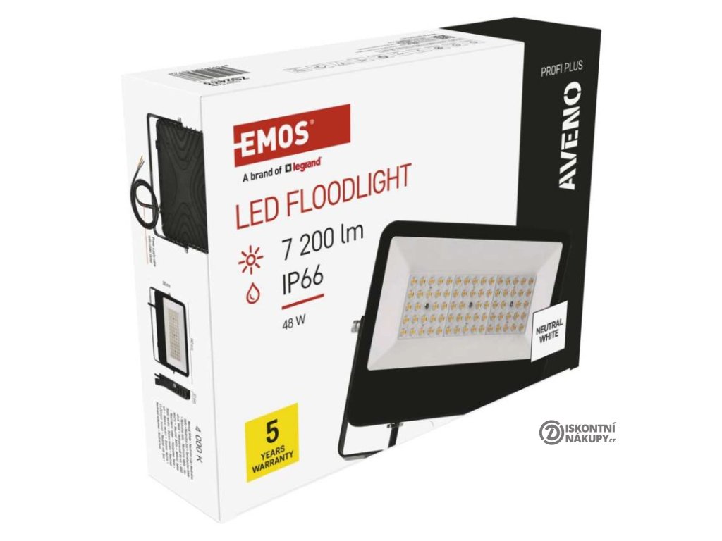 akumulátor: neuvádí se|barva: černá|barva světla: neutrální bílá|délka přívodního kabelu: 1 m|doba svícení na AKU: neuvádí se|dosah PIR senzoru: nemá PIR|energetická třída použitého světelného zdroje: C|flicker-free: neuvádí se|frekvence: 50/60 Hz|index podání barev (CRI): Ra > 80|kategorie: PROFI PLUS|krytí: IP66|materiál difuzoru: sklo|materiál přívodního kabelu: guma|materiál těla: hliník|napájení: ze sítě|napětí: 220–240 V|PIR senzor: ne|počet průchozích zásuvek: 0|použití: povrchová montáž|příkon: 48 W|prodejní obal: 1 ks, krabice|proud: 215 mA|řada: AVENO|rozměr: 247 × 183 × 37 mm|rozsah pracovní teploty: -30 °C až +50 °C|stmívání: ne|stupeň ochrany proti mechanickým nárazům: IK08|světelná účinnost: 150 lm/W|světelný tok: 7 200 lm|teplota chromatičnosti: 4 000 K|typ přívodního kabelu: neuvádí se|typ průchozích zásuvek: neuvádí se|typ stmívání: –|účiník: > 0,9|úhel vyzařování: 100°|záruční doba: 5 let|zdroj světla: LED|životnost: 50 000 hodin|zkušební žárovka součástí balení: neuvádí seDoplňkové parametry