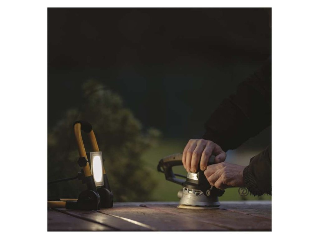 Široký úhel osvětlení plochy 110°.Odolnost vůči vodě a nárazu díky krytí IP44 a stupni ochrany IK10.Důmyslně řešené madlo a skládací konstrukce usnadňují transport reflektoru.Úspora energie až 75 % oproti běžným halogenovým reflektorům.Vhodné pro osvětlování pracovních činností: na stavbách, dílnách, v autoservisech, garážích apod.