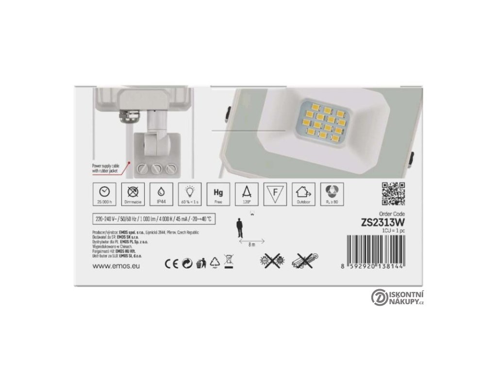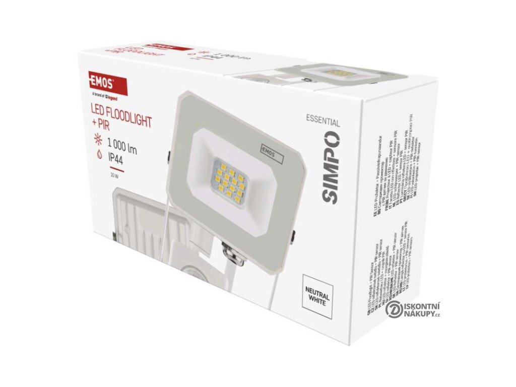 akumulátor: ne|barva: bílá|barva světla: neutrální bílá|délka přívodního kabelu: 20 cm|doba svícení na AKU: neuvádí se|dosah PIR senzoru: 8 m|energetická třída použitého světelného zdroje: F|flicker-free: ano|frekvence: 50/60 Hz|index podání barev (CRI): Ra > 80|kategorie: ESSENTIAL|krytí: IP44|materiál difuzoru: sklo|materiál přívodního kabelu: guma|materiál těla: hliník|napájení: ze sítě|napětí: 220–240 V~|PIR senzor: ano|počet průchozích zásuvek: neuvádí se|použití: povrchová montáž|příkon: 10 W|prodejní obal: 1 ks, krabice|proud: 45 mA|řada: SIMPO|rozměr: 85 × 141 × 52 mm|rozsah pracovní teploty: -20 °C až +40 °C|stmívání: ne|stupeň ochrany proti mechanickým nárazům: neuvádí se|světelná účinnost: 100 lm/W|světelný tok: 1 000 lm|teplota chromatičnosti: 4 000 K|typ přívodního kabelu: H05RN-F|typ průchozích zásuvek: neuvádí se|typ stmívání: –|účiník: > 0,5|úhel vyzařování: 120°|záruční doba: 2 roky|zdroj světla: LED|životnost: 15 000 hodin|zkušební žárovka součástí balení: neDoplňkové parametry