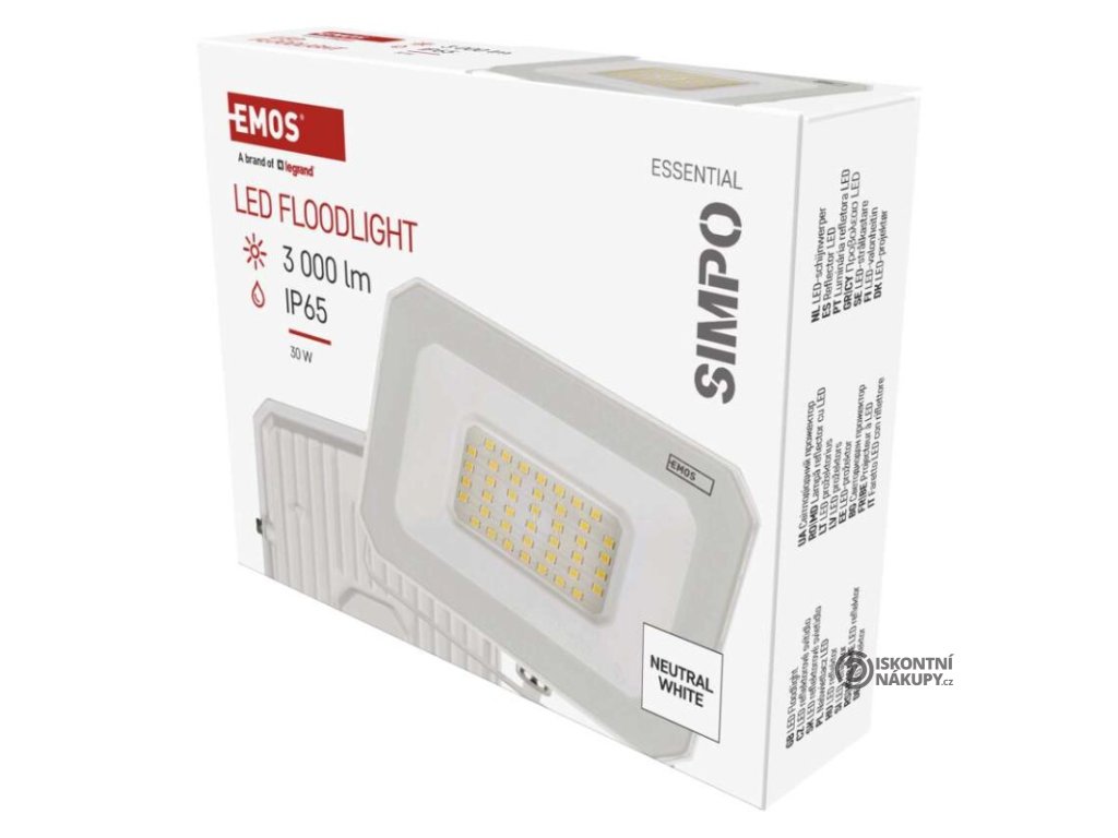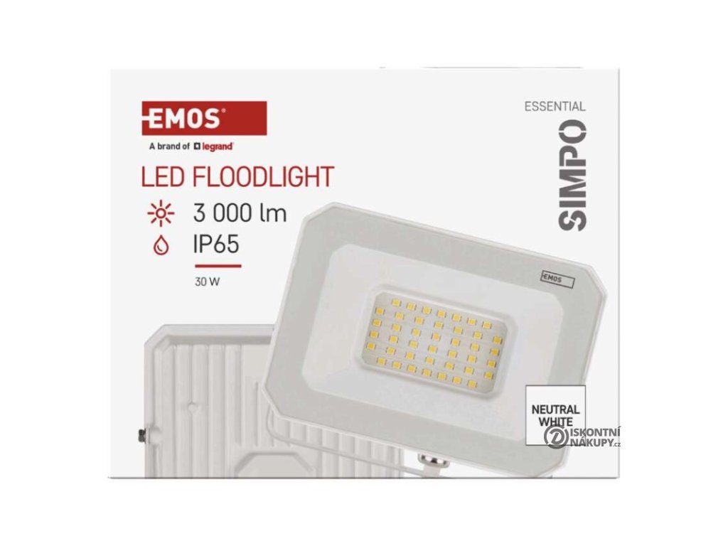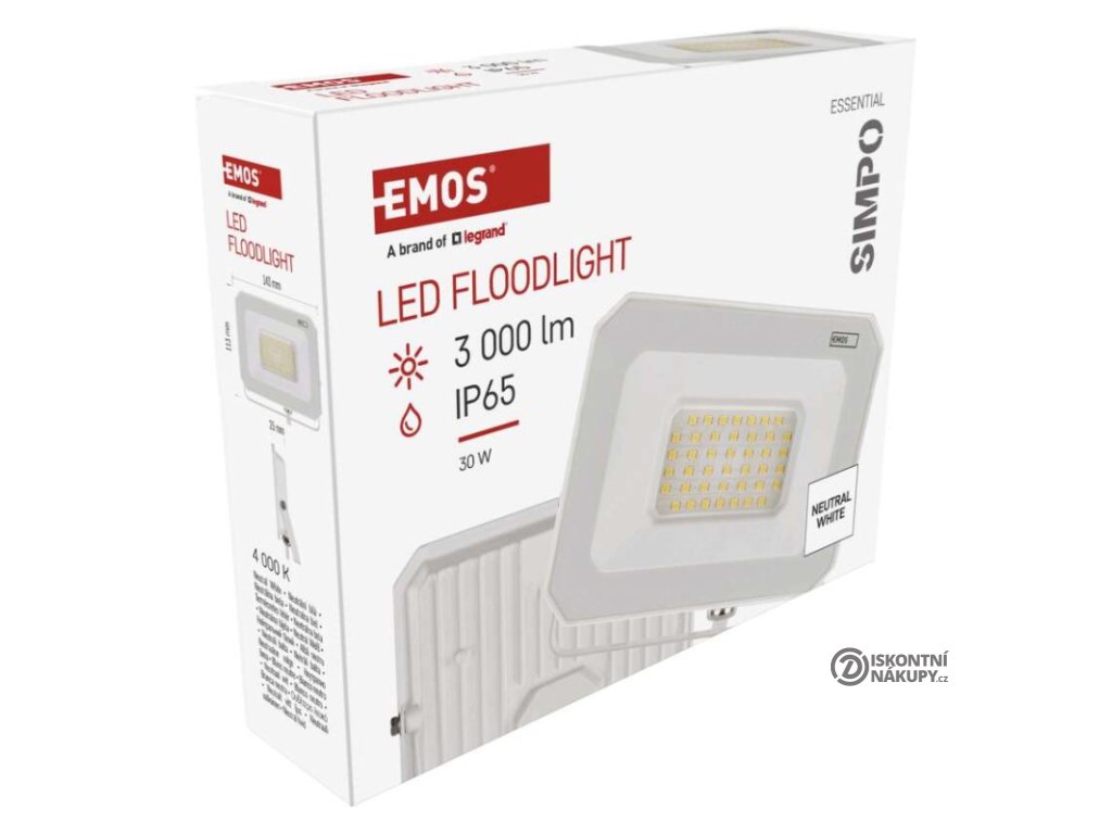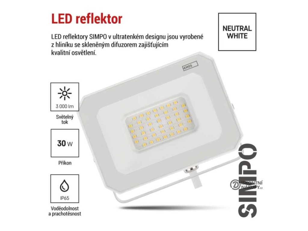 LED reflektor SIMPO 30W, bílý, IP65, 3000 lm, neutrální bílá